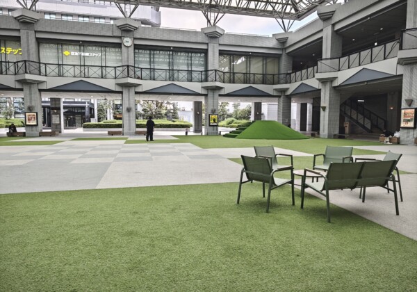 屋根ありで雨天利用OK!吹き抜けで自然光が豊かに差し込む人工芝広場「大阪ベイタワー アトリウム広場」 JRと地下鉄中央線の弁天...