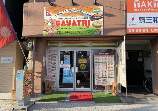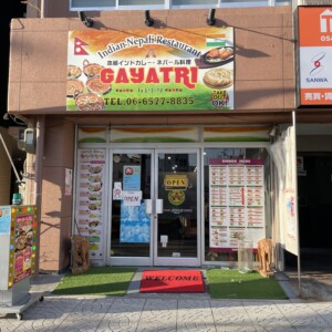 朝潮橋駅からすぐの大通り沿いにある「インド&ネパール料理 GAYATRI-ガヤトリ」電球が付いた看板にネパールの旗が目印...