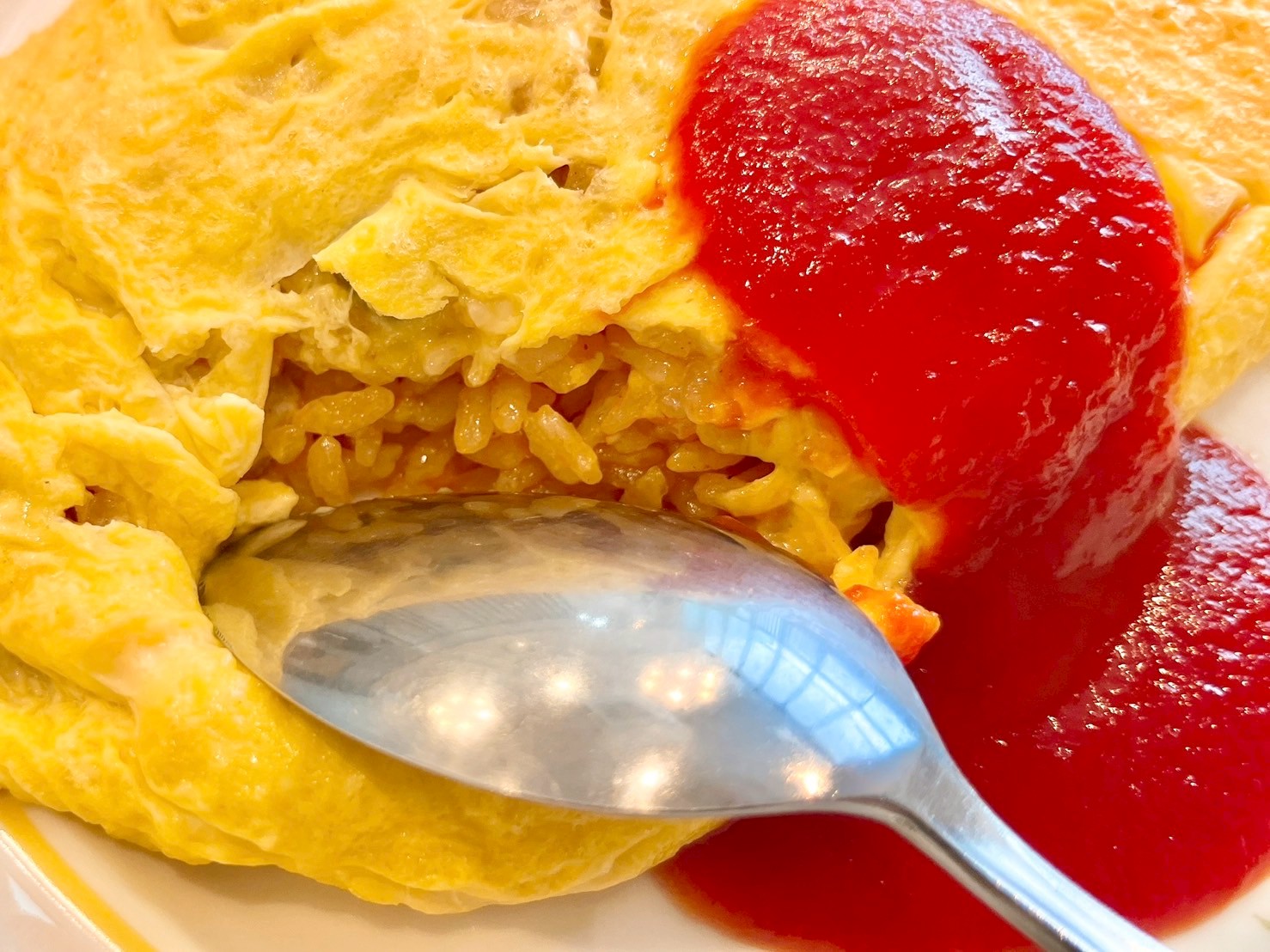 まるで雲のようなふわふわの卵が、ケチャップライスの甘みとマッチして口の中でとろけていきます。一口食べるごとに幸せな気分になれます。オムライス好きには是非一度は食べてもらいたい絶品です!