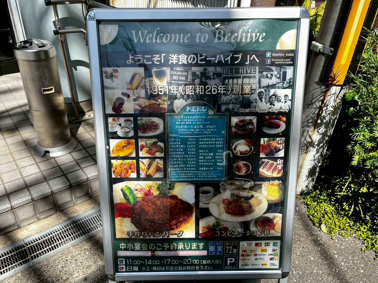大阪港付近で洋食を食べたければ、ココで間違いありません。「洋食のビーハイブ」は今年で創業74年目になります。戦後復興期、高度経済成長期、バブル期、氷河期、コロナ禍とどんなときも人々の食を支え、親しまれてきた「洋食のビーハイブ」。人々の思いを繋いできた歴史を感じるレストランでした。昔ながらの趣が感じられるこのお店で、心に残る美味しい料理とともに、ぜひ特別なひとときをお楽しみください。