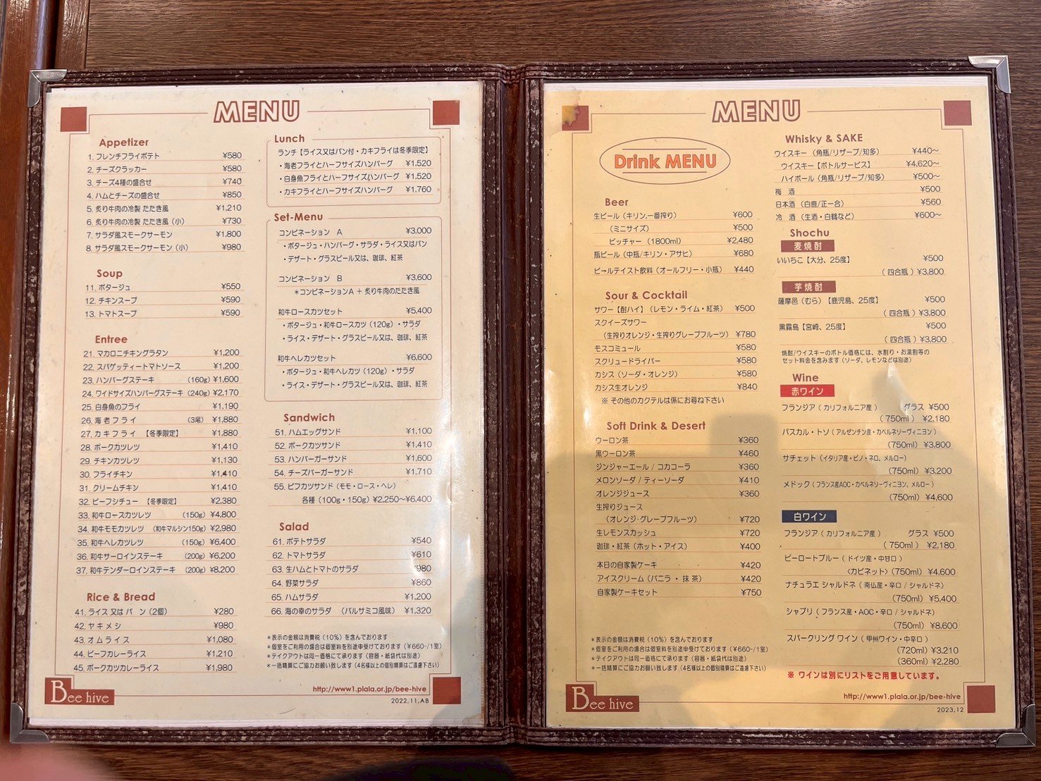 「洋食BEE HIVE – ビーハイブ」メニュー