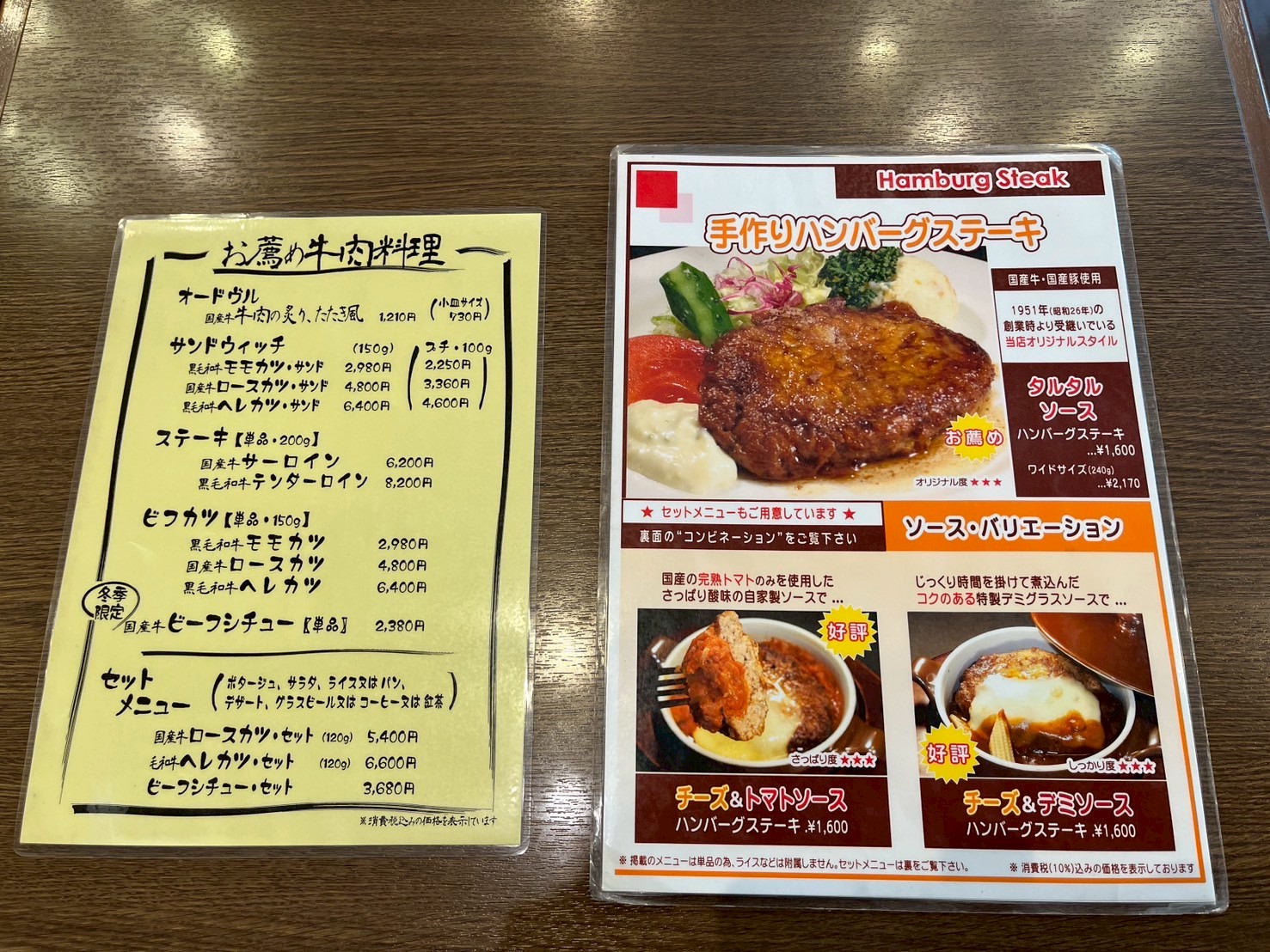 手作りハンバーグステーキは、1951年(昭和26年)の創業時より受け継いでいるオリジナルスタイルだそうです。