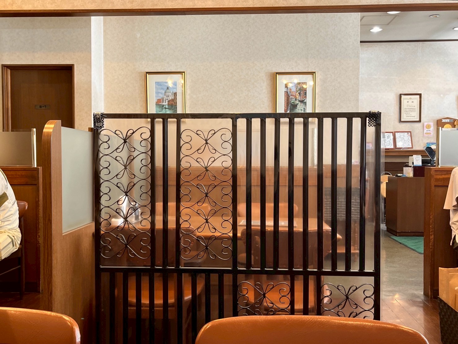 店内に一歩足を踏み入れると、どこか懐かしいノスタルジーが感じられます。店内は昼時で、休憩中のサラリーマンや家族連れで賑わっておりましたが、席がガラスのパーテーションで区切られているので、ほどよくプライバシーも守られている安心感がありました。