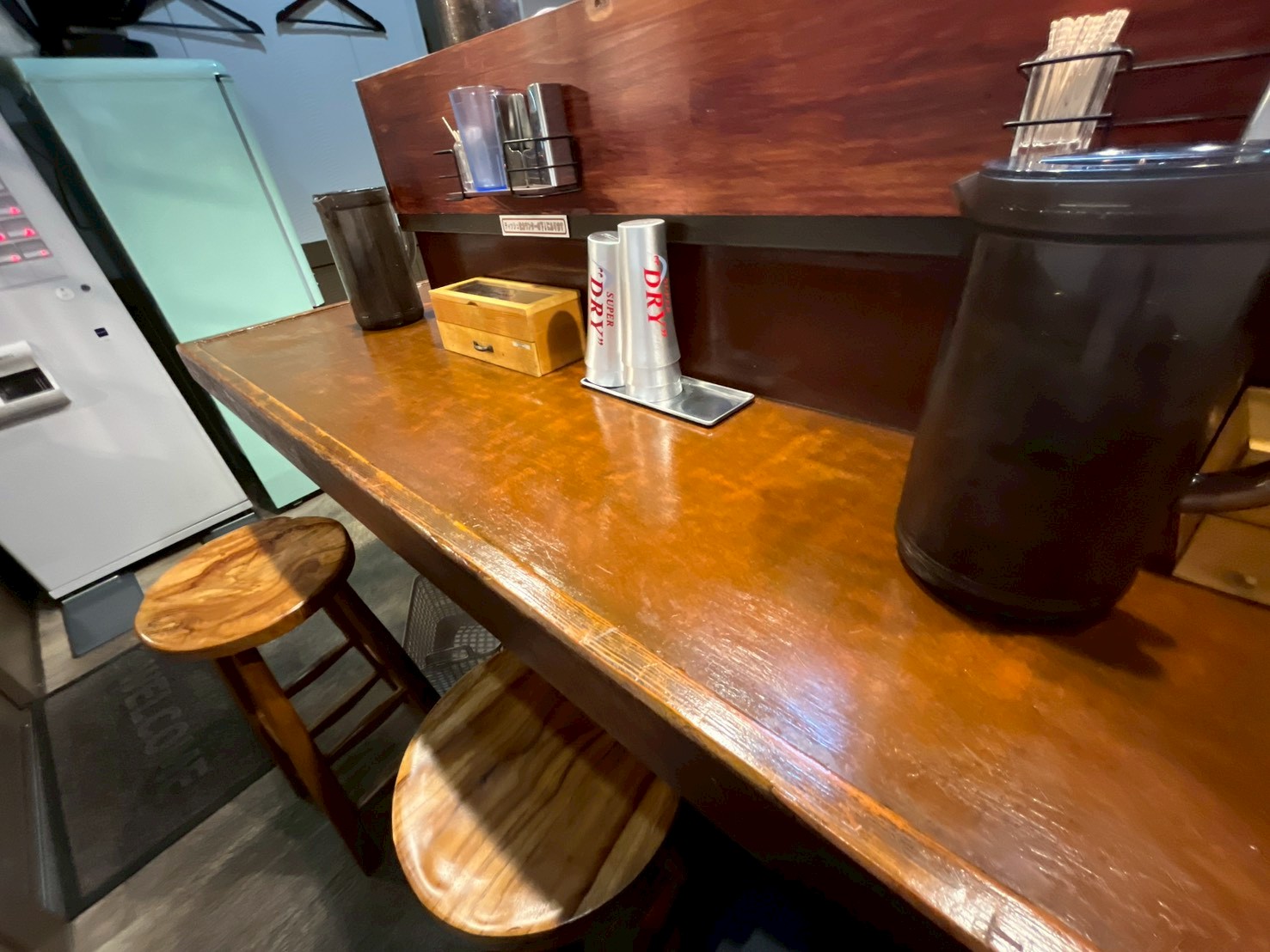 シンプルながらも清潔感がある店内は、L字カウンター5席のみというコンパクトな造りになっています。視覚的なノイズが少ないので味わうことに集中できそう。こじんまりした空間を好む人なら、落ち着いて過ごせること間違いなしです。