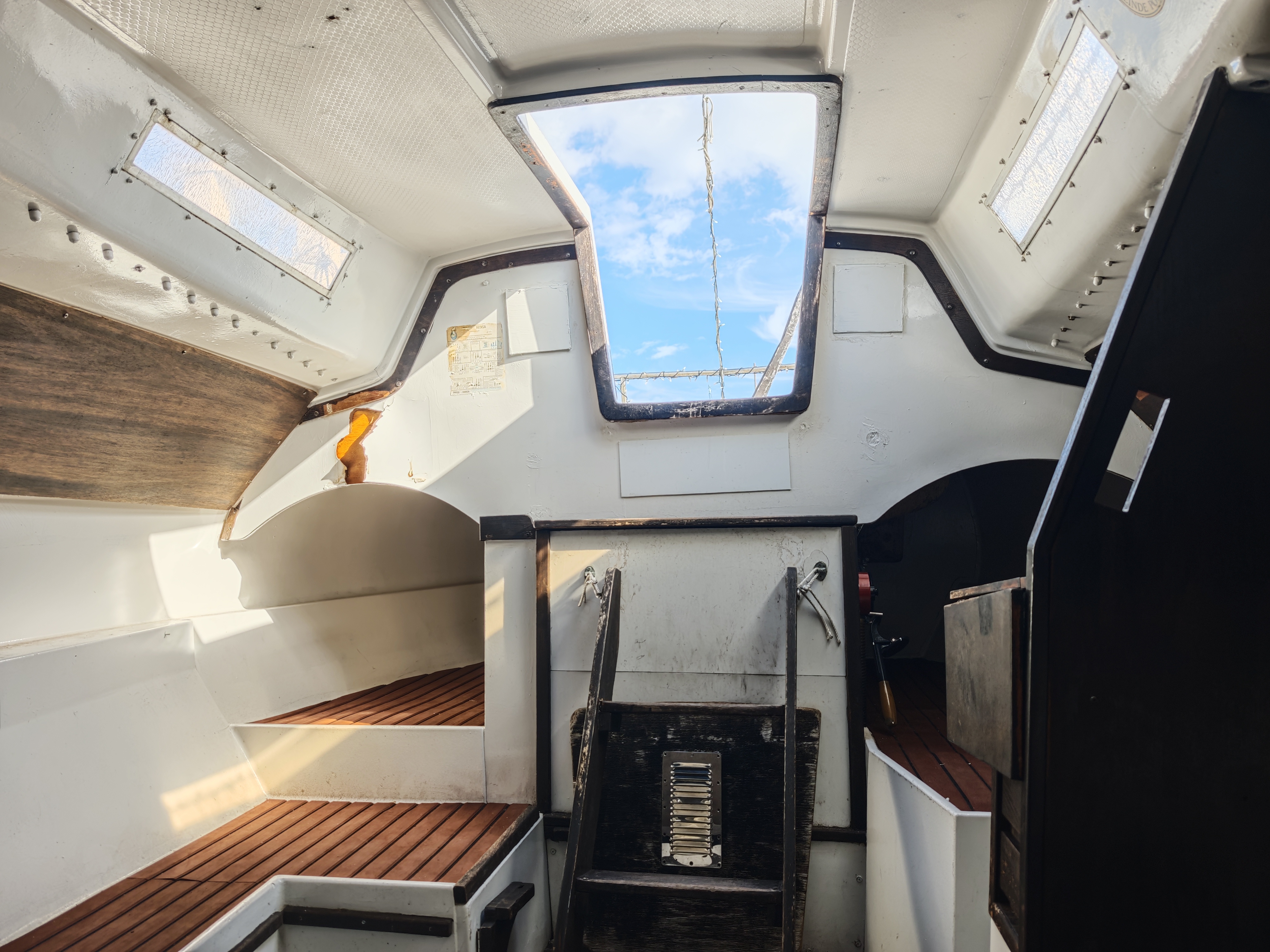 本物のボートの中に入れる貴重な体験です。大人だと船内は少し狭いので頭をぶつけないように注意です。