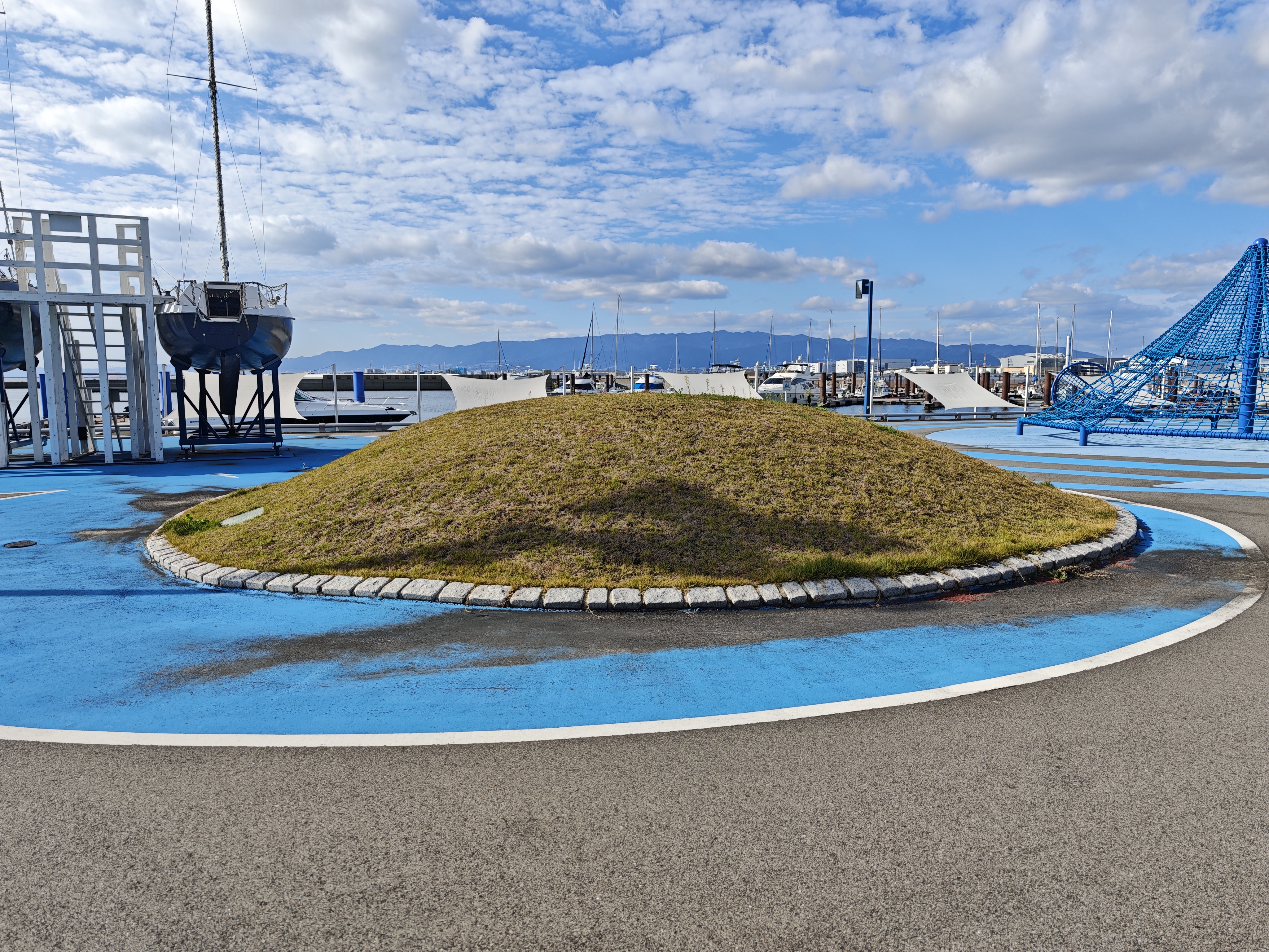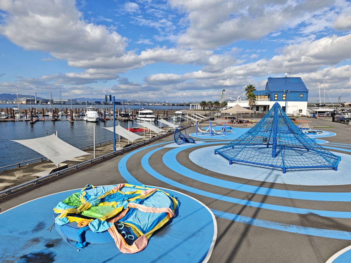 舞洲を抜けてすぐの北港マリーナ内にある海沿いの公園「大阪北港マリーナ PARK HULL – パークハル」