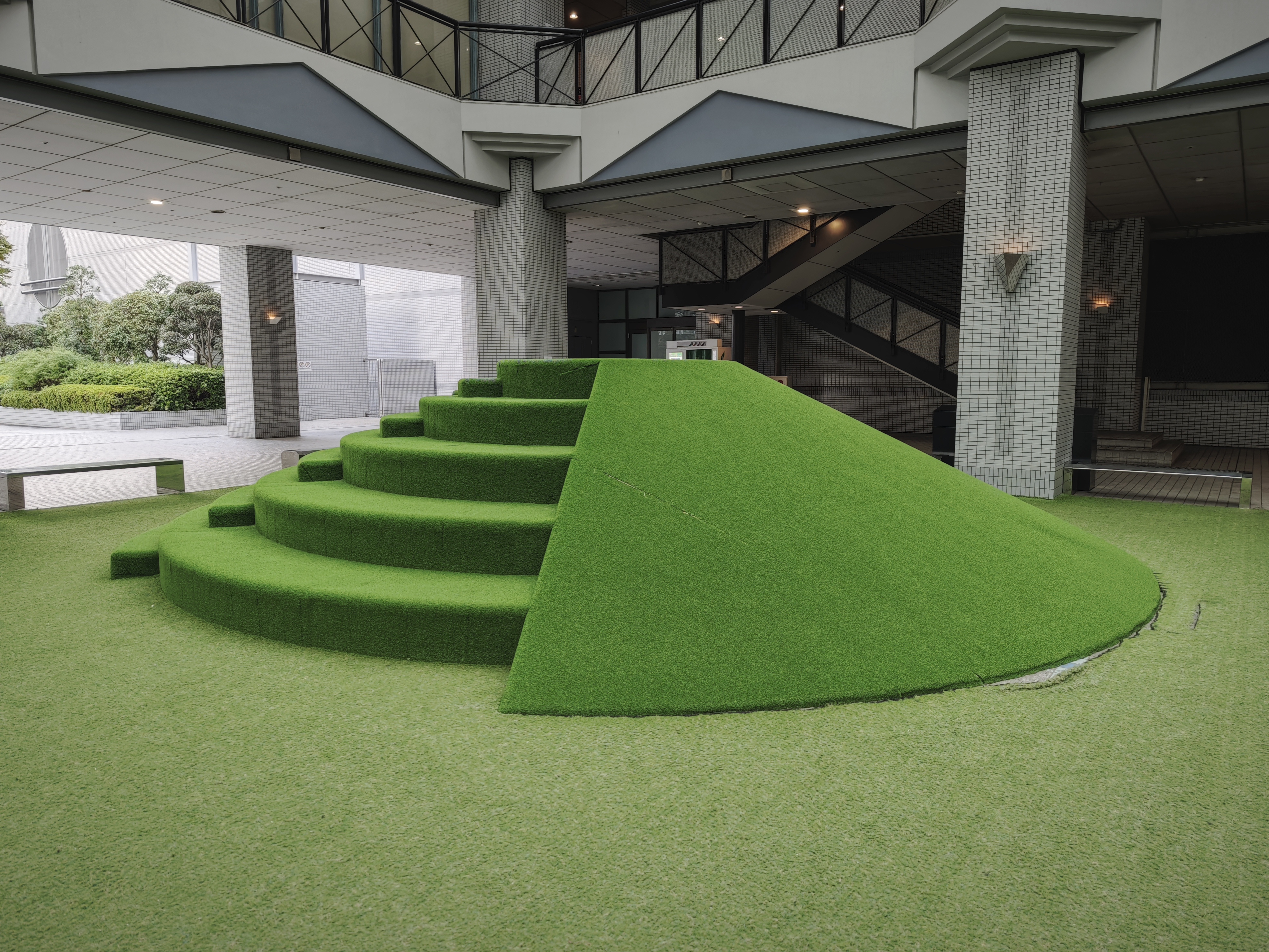 屋根ありで雨天利用OK!吹き抜けで自然光が豊かに差し込む人工芝広場「大阪ベイタワー アトリウム広場」