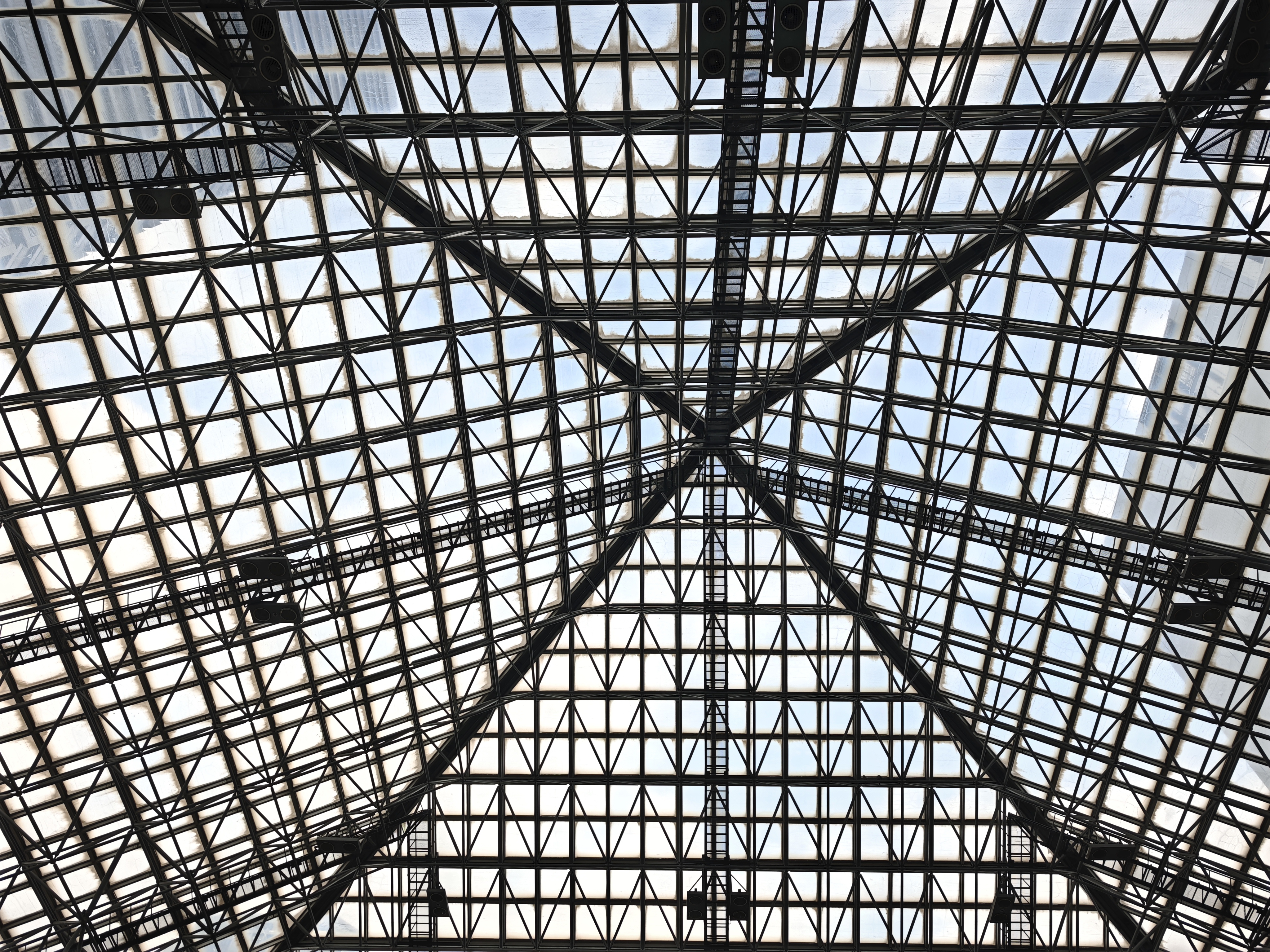 ガラス張りの吹き抜け屋根に覆われているので、晴れた日は光が差し込み雨天でも利用できます。