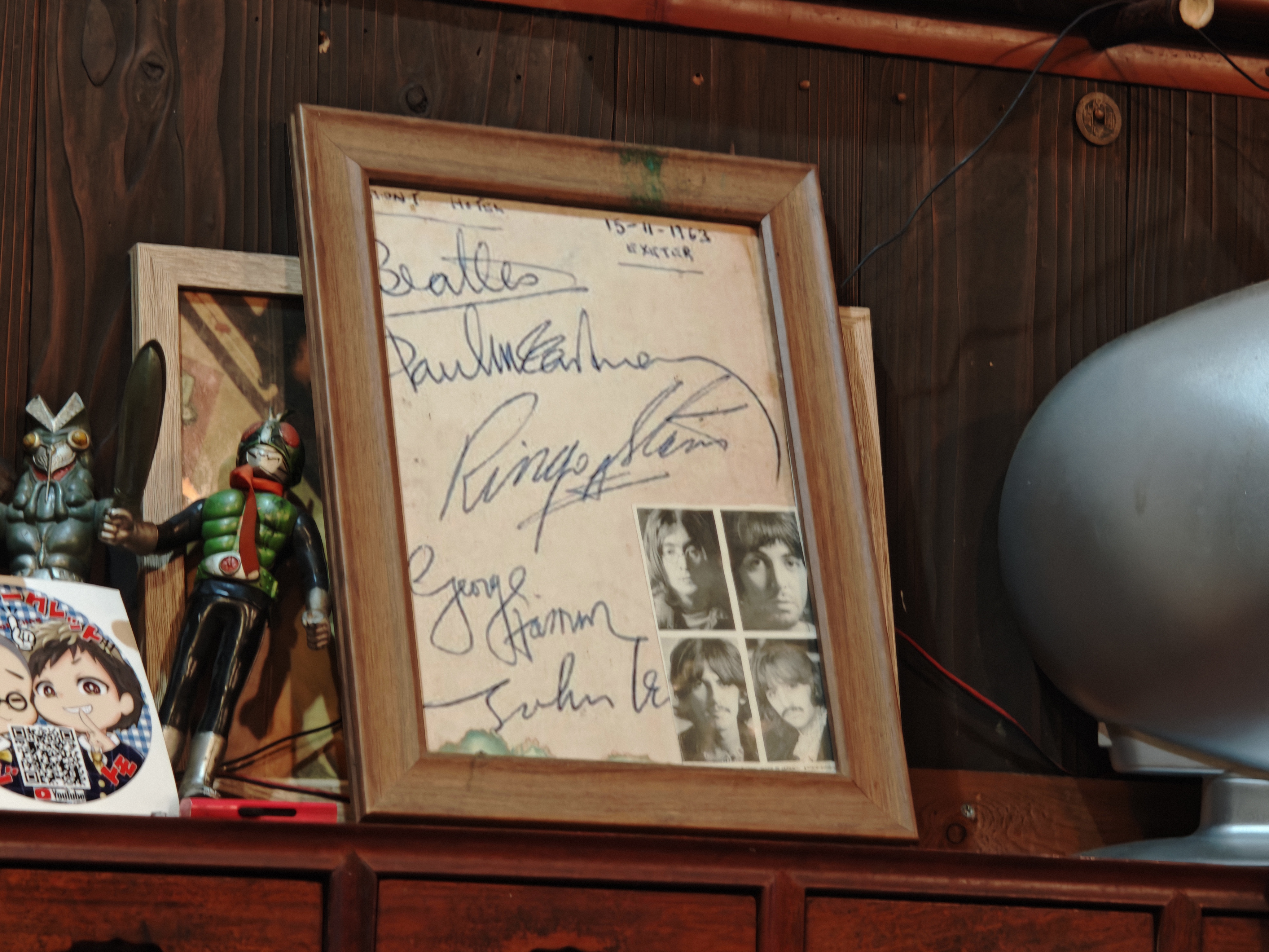 なんとビートルズのサインです。このサインはオフィシャルの正規コピーで、店主さんがビートルズの大ファンらしいです。