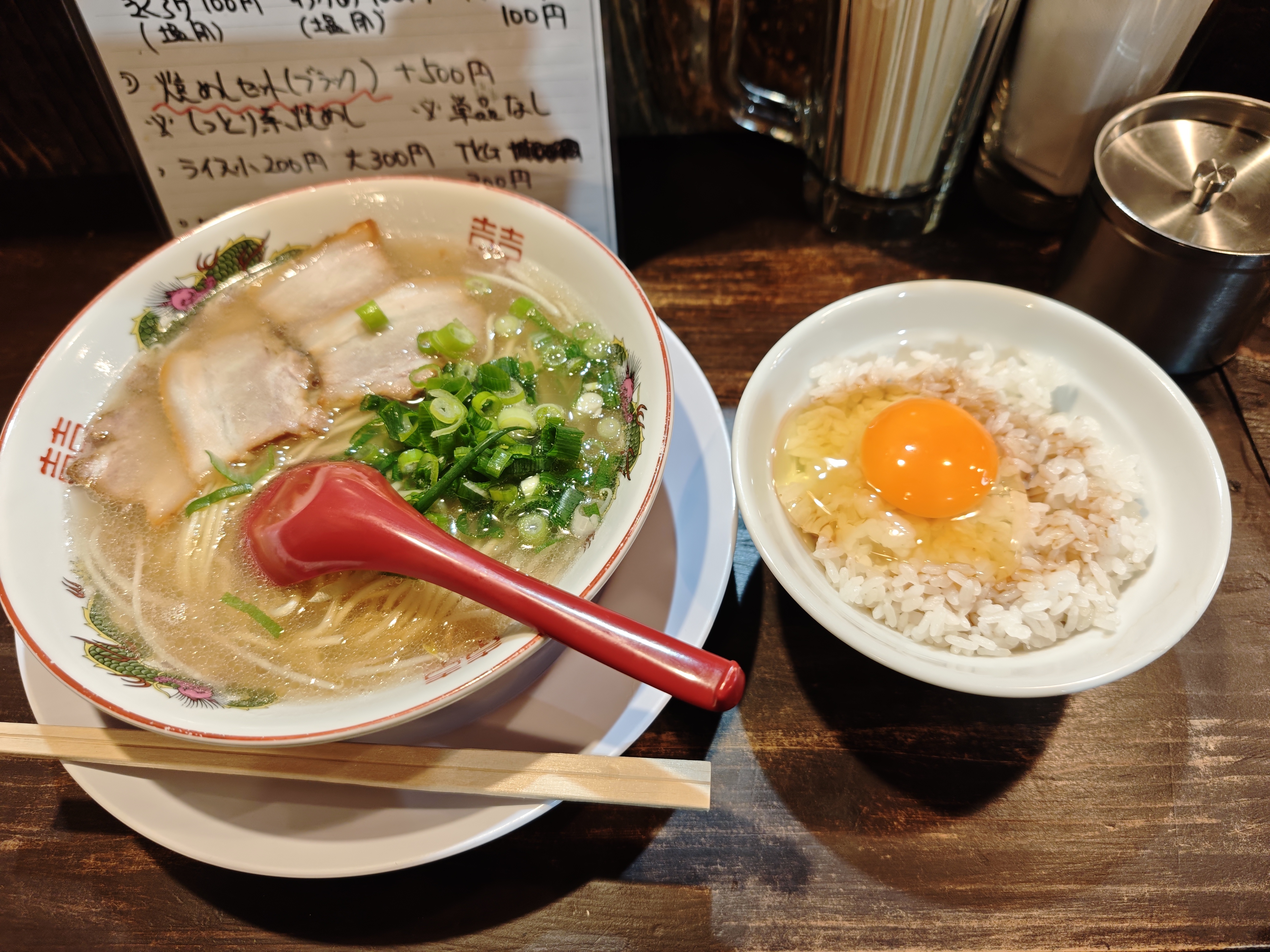 今回は貝だし塩ラーメンと卵かけご飯のセットを注文しました。