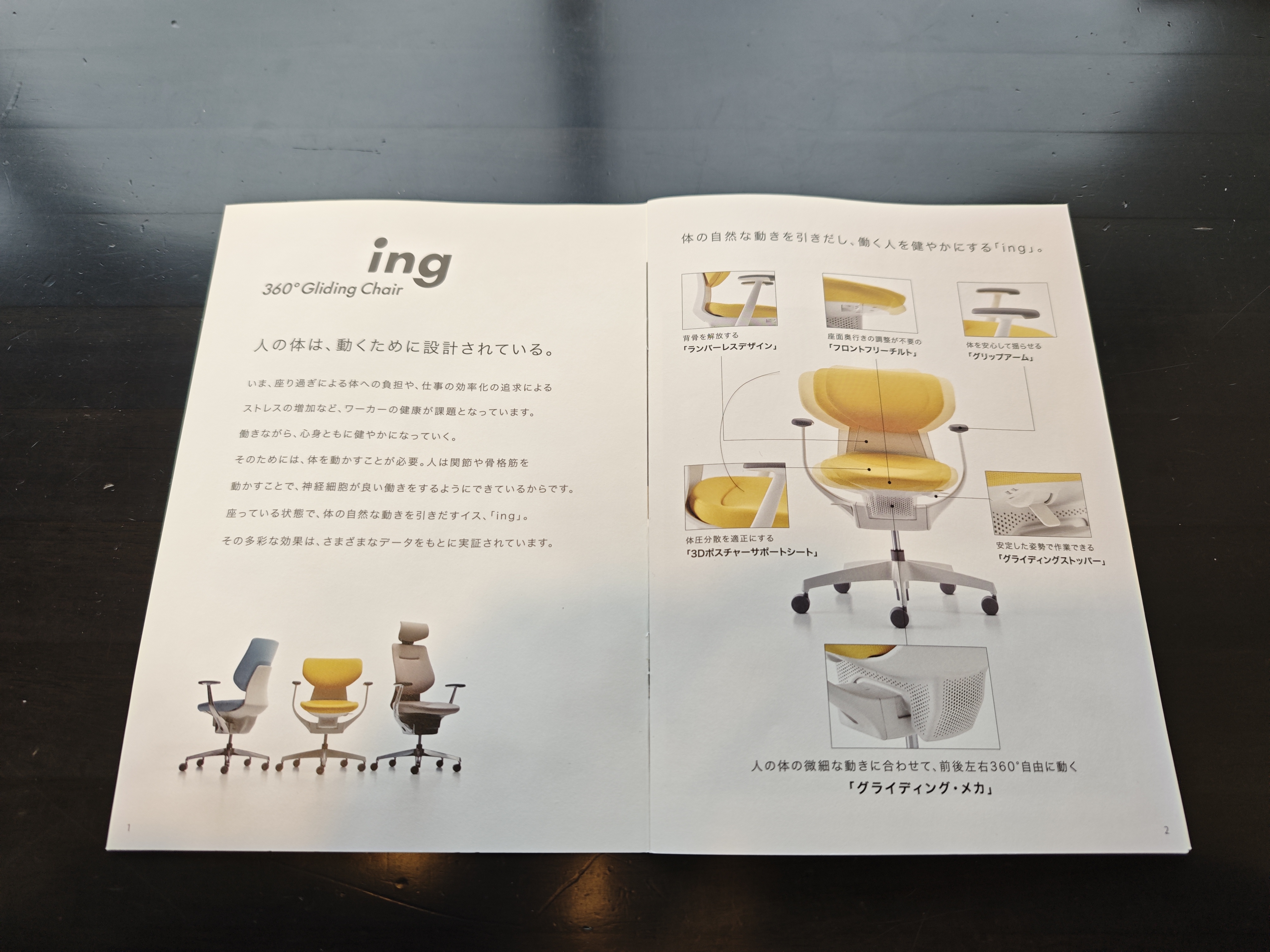 黄色い椅子はコクヨの「ing」というワークチェアです。