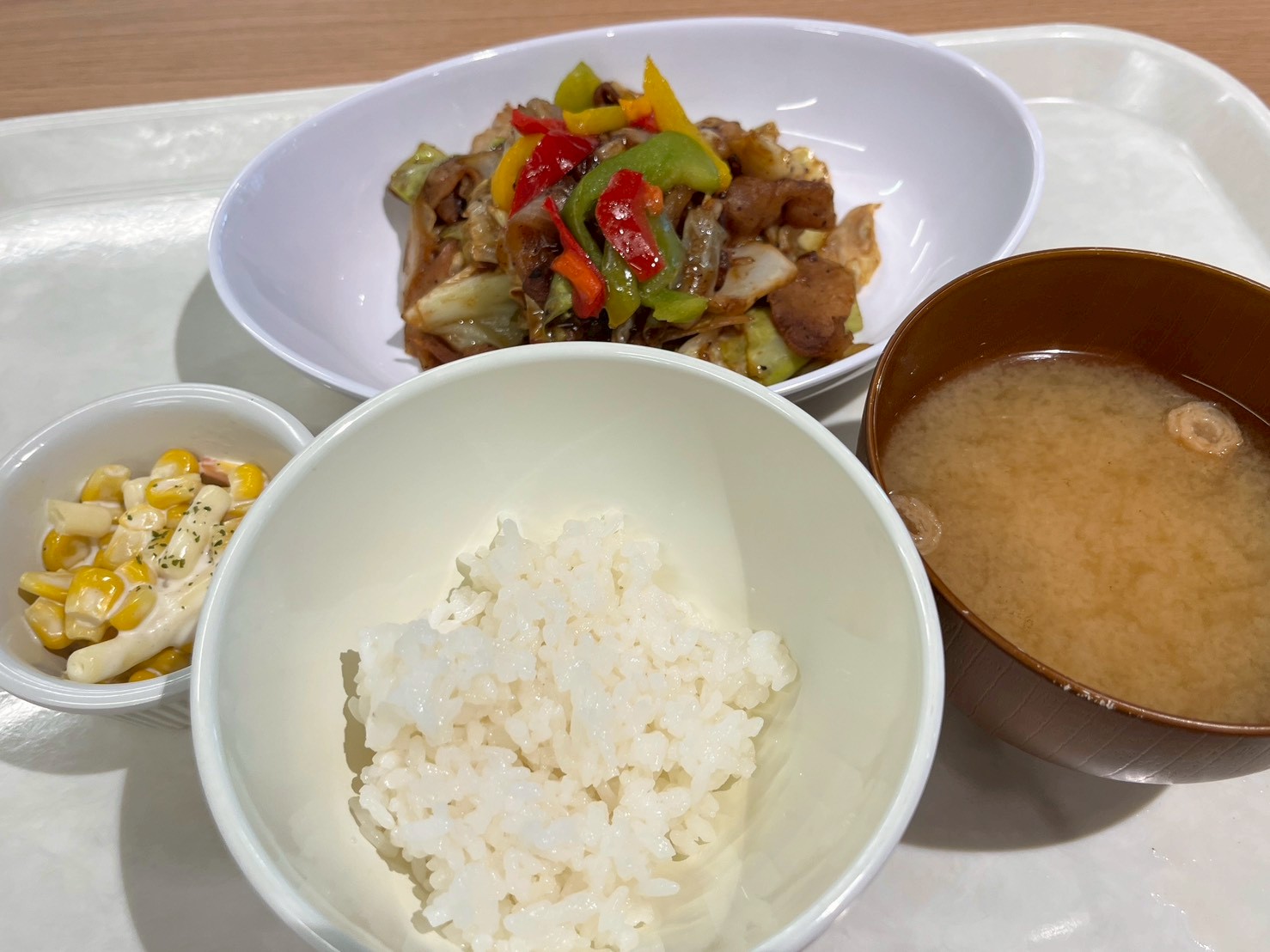 回鍋肉定食を注文しました。定食はご飯の量を選ぶことが出来ました。