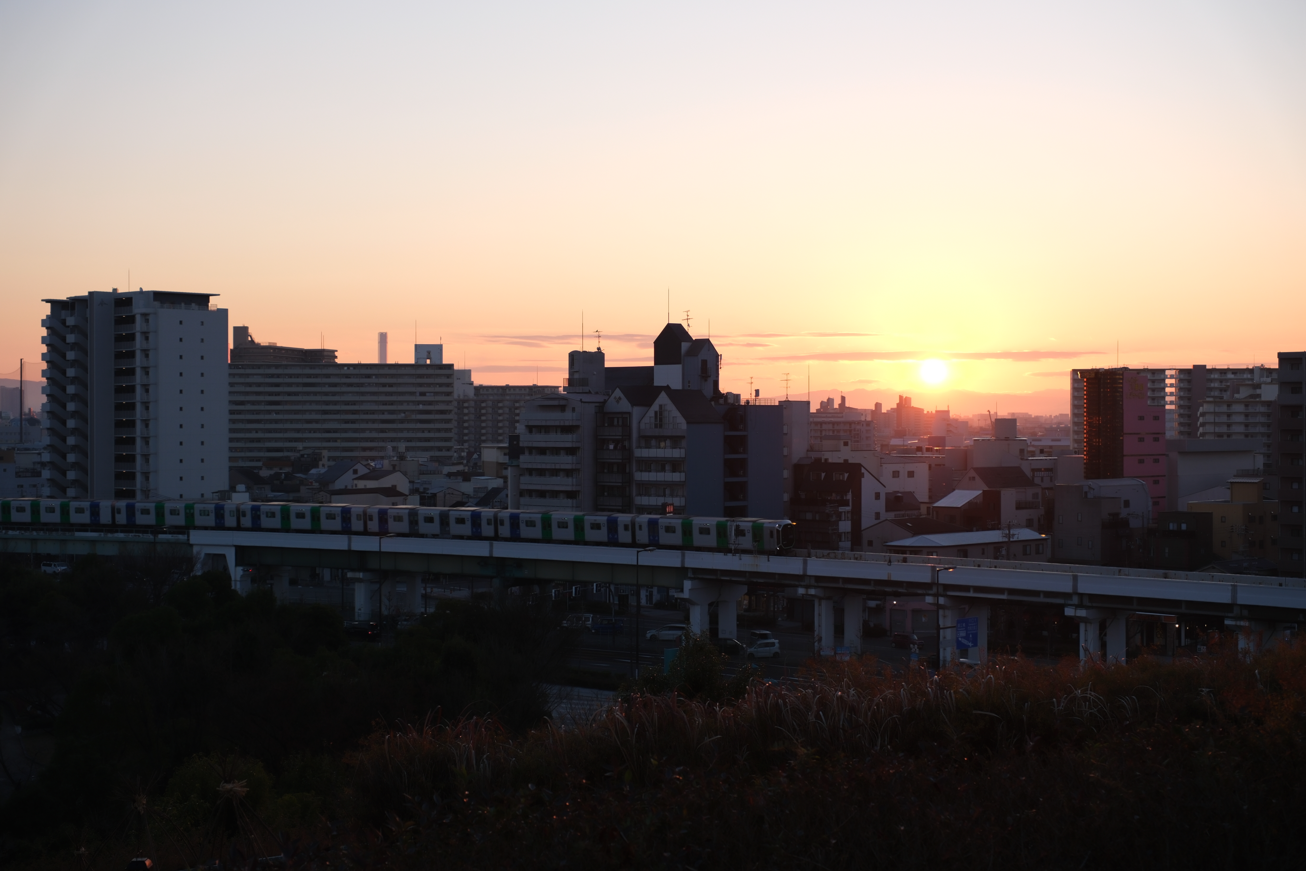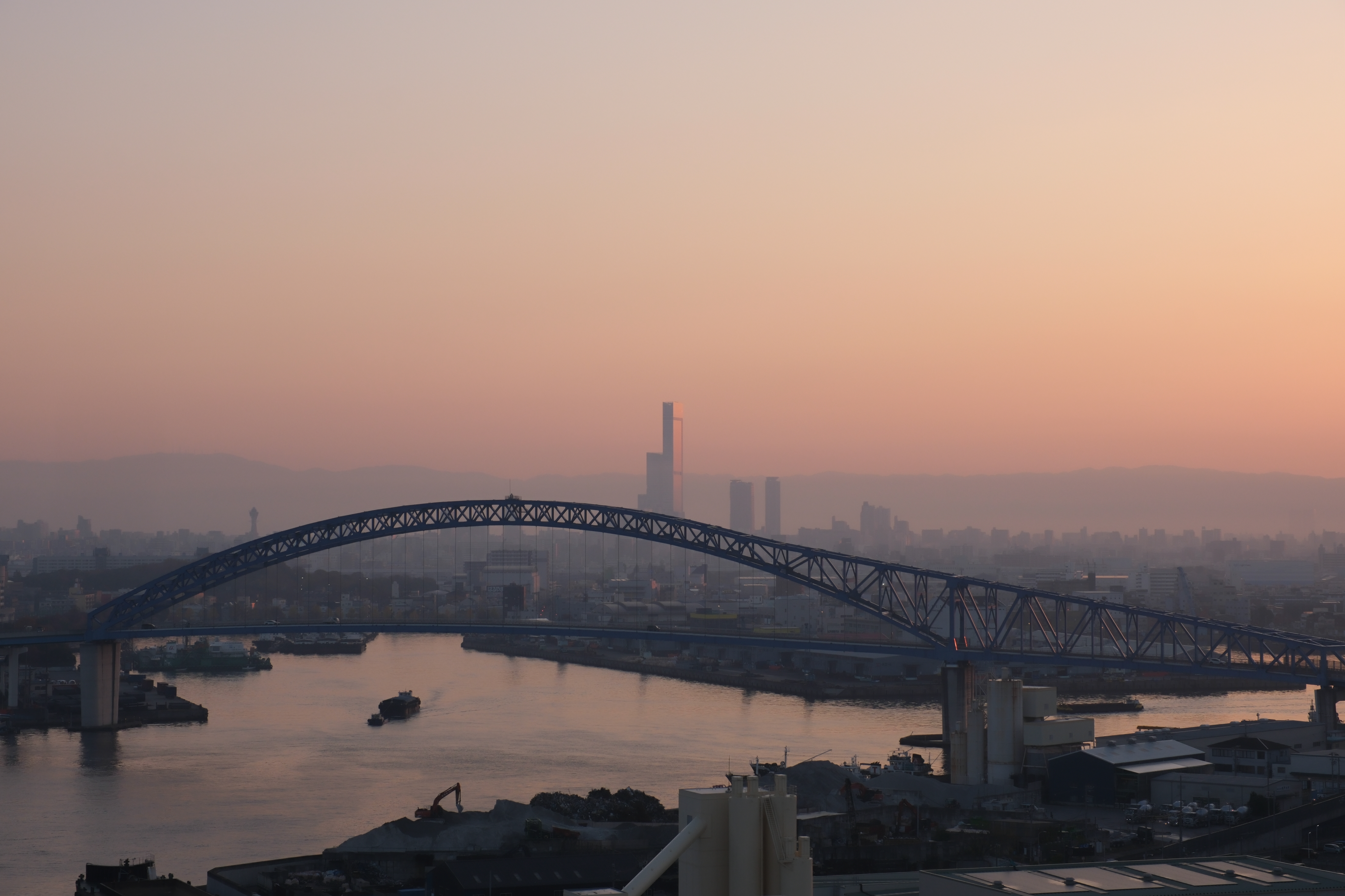 ここは人気の日の出スポットですが、最寄駅(大阪港駅)から徒歩だとかなり遠いので、自動車や自転車を橋の近くに停めて行く必要があります。
