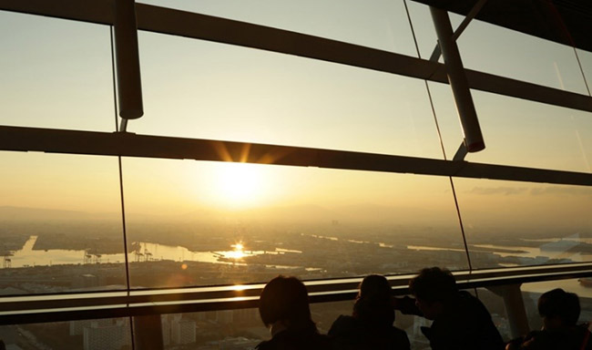 一番高い中央部分は水面から約47メートル(約15階建て)の高さなので、海と大阪の街を一緒に夕陽を眺められます。