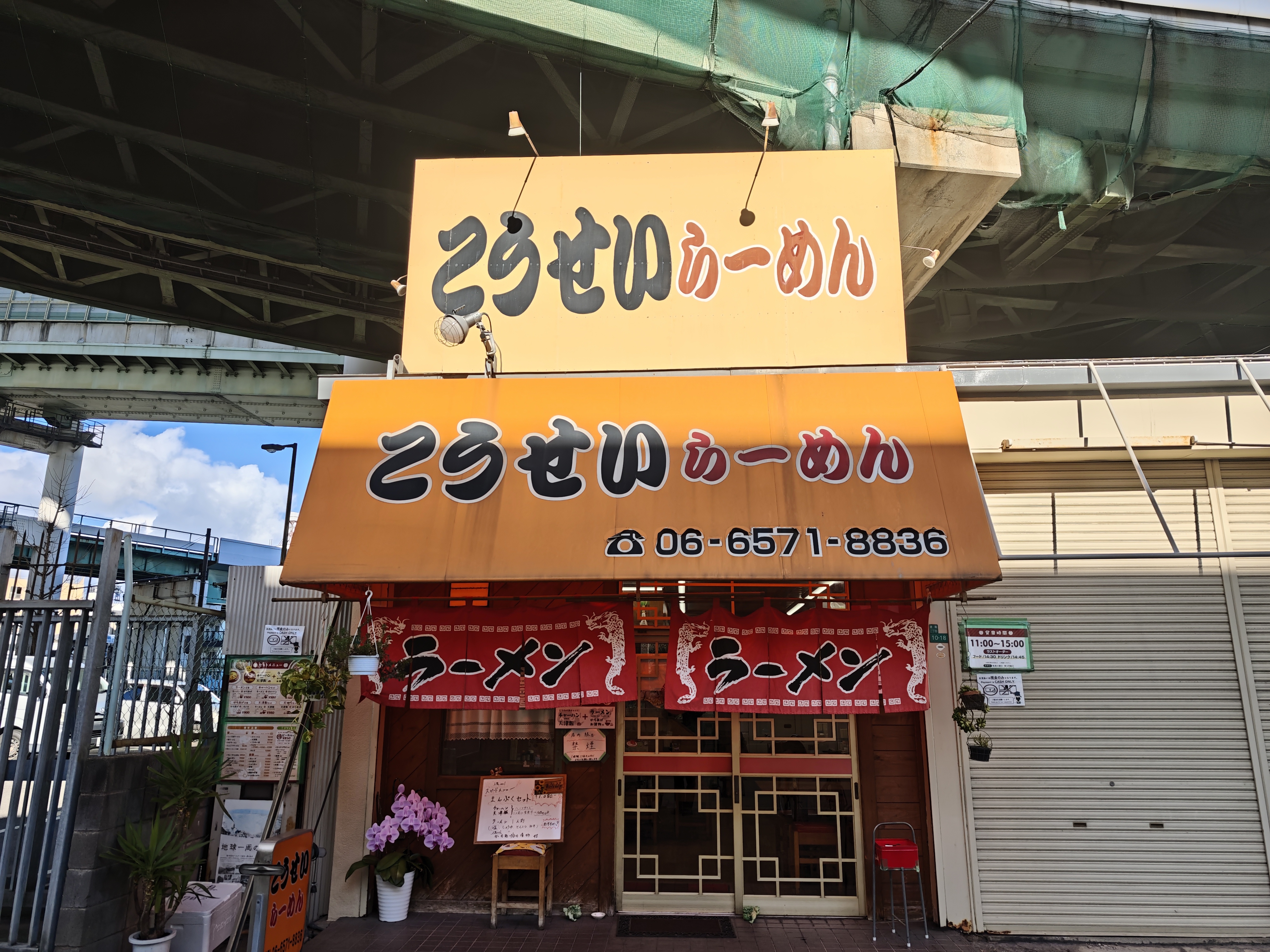 朝潮橋駅と大阪港駅の間位、阪神高速天保山入口のすぐ横にあるラーメン店「こうせいラーメン」