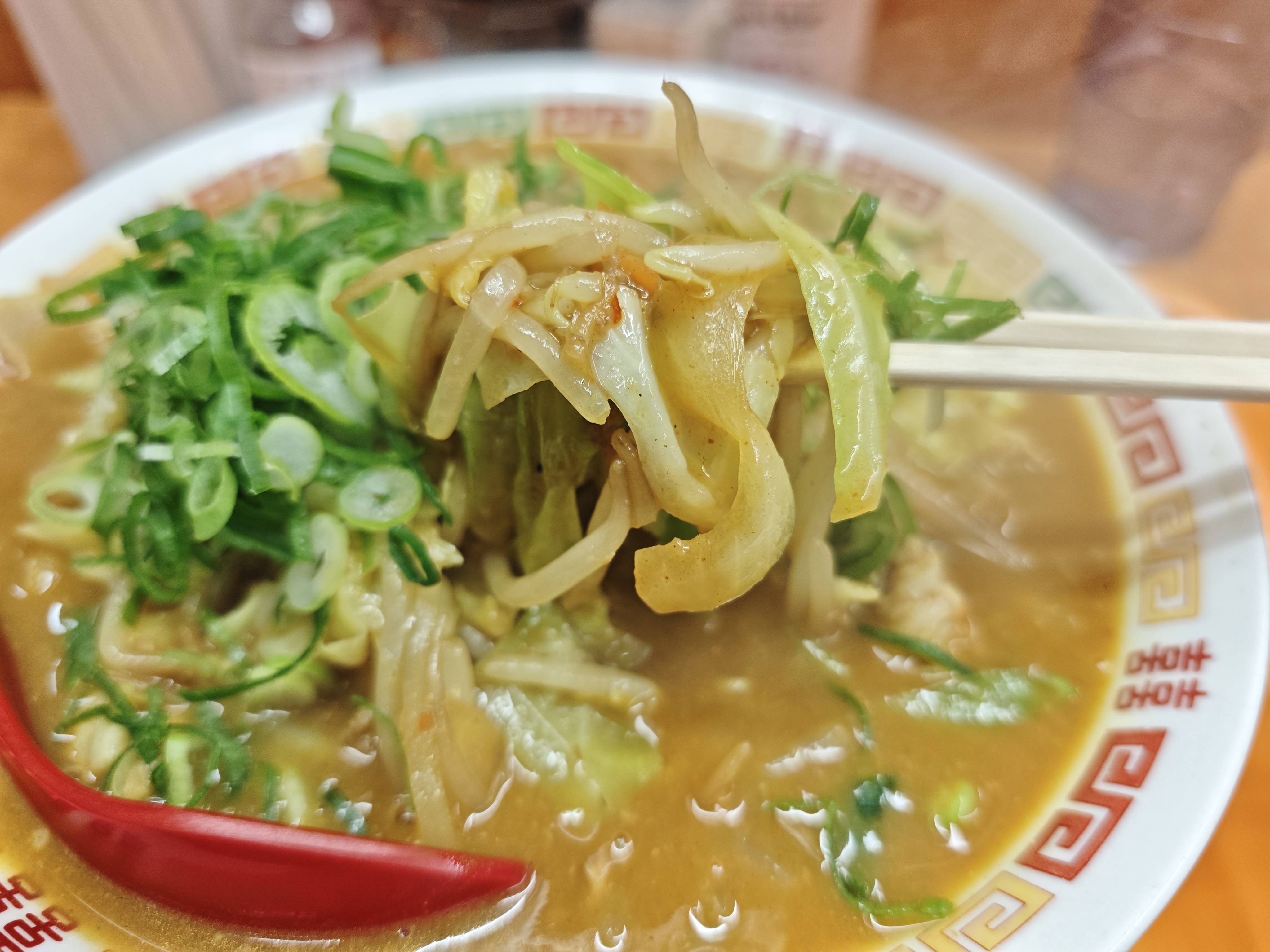 ちゃんぽんの具材はとても多く、一すくいでは麺まで辿り着きません。