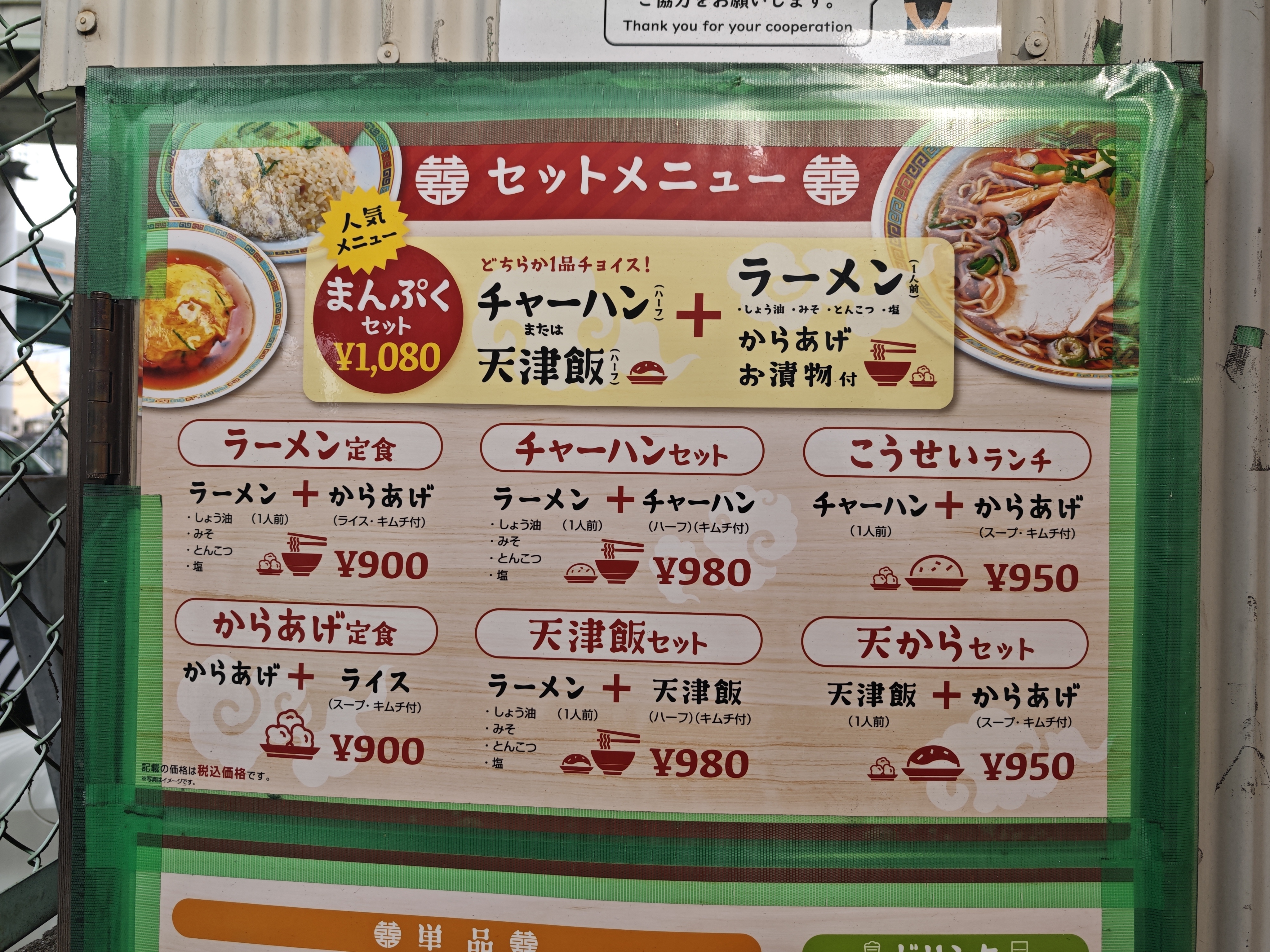 「こうせいラーメン」メニュー