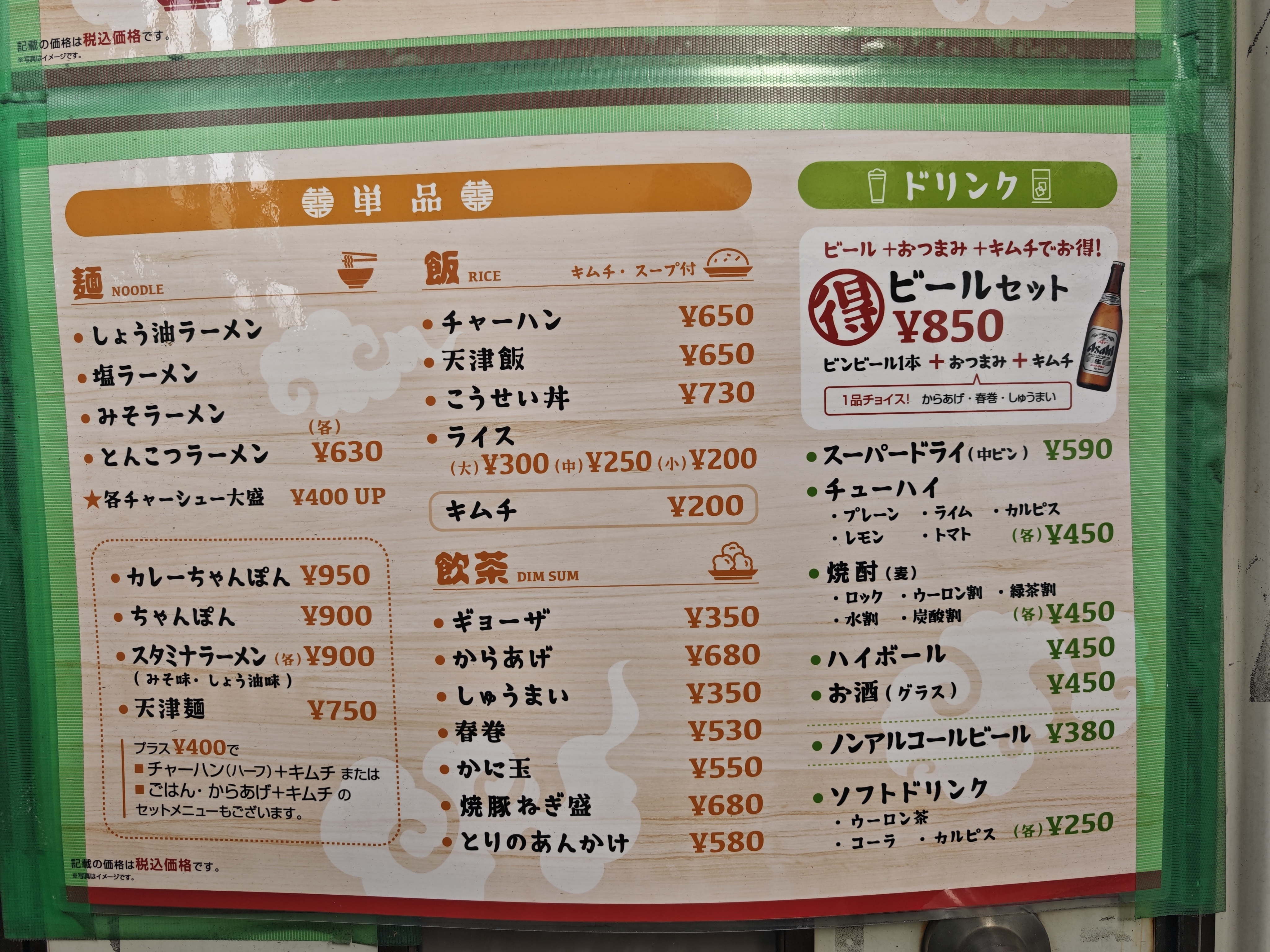 ラーメン単品だと630円という令和にしては破格の安さです。