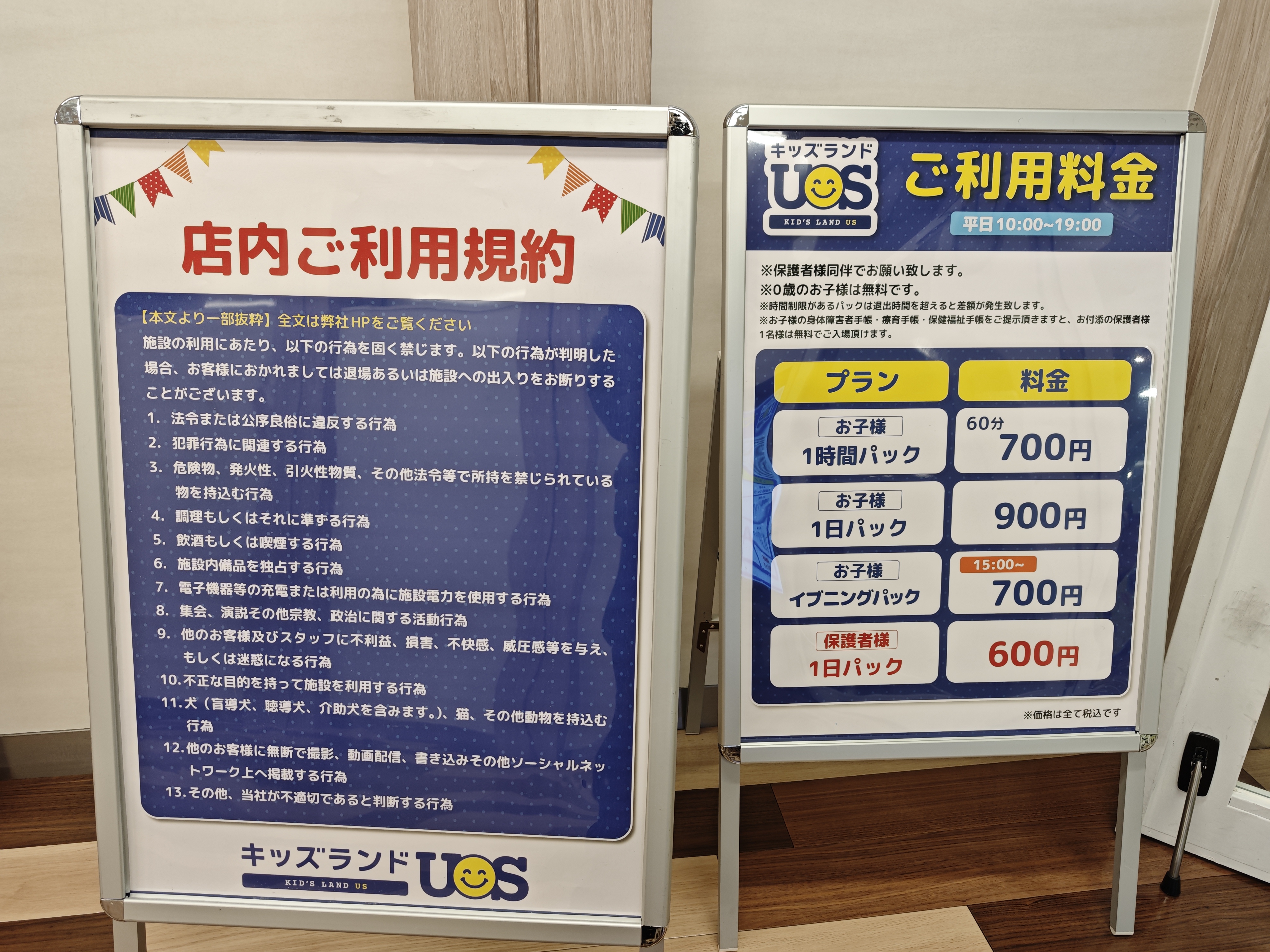 子供は平日は1日滞在可能、休日は最大で3時間(延長料金支払いで延長可能)滞在可能です。