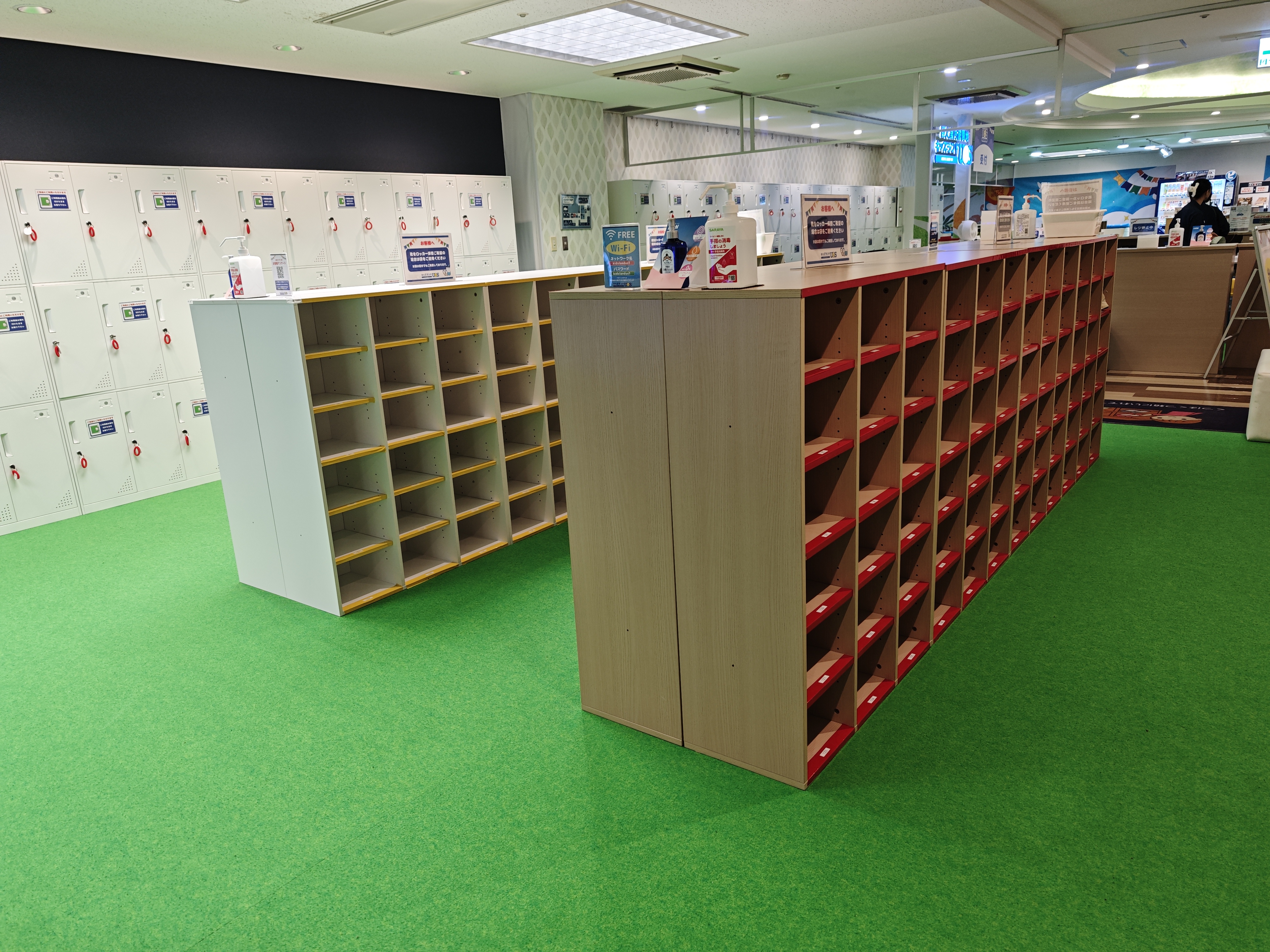 入ってすぐに靴置きと無料で使えるロッカーがあるので、荷物を気にしなくて良いですね。