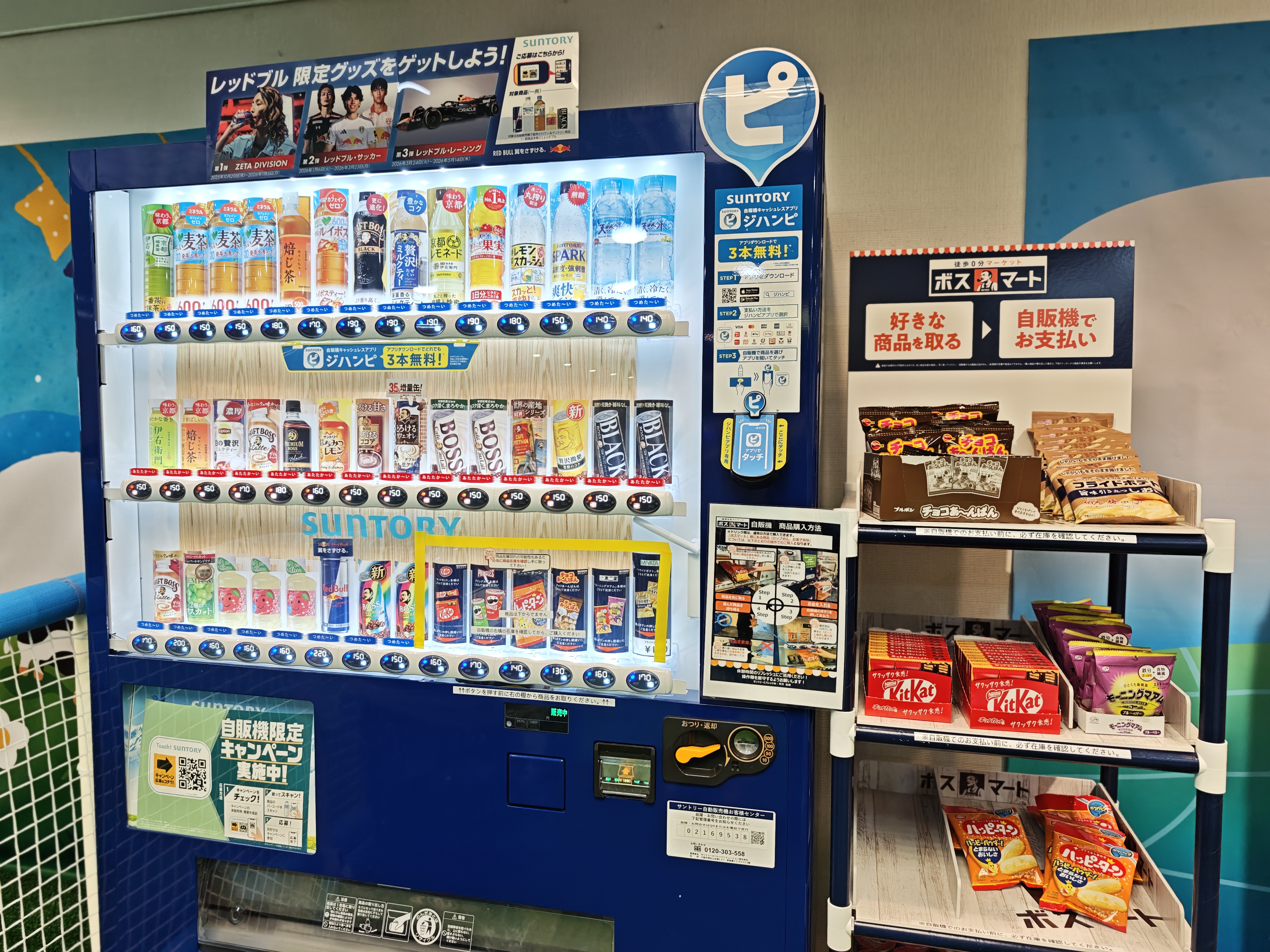 自動販売機はジハンピというアプリでキャッシュレス決済にも対応しています。