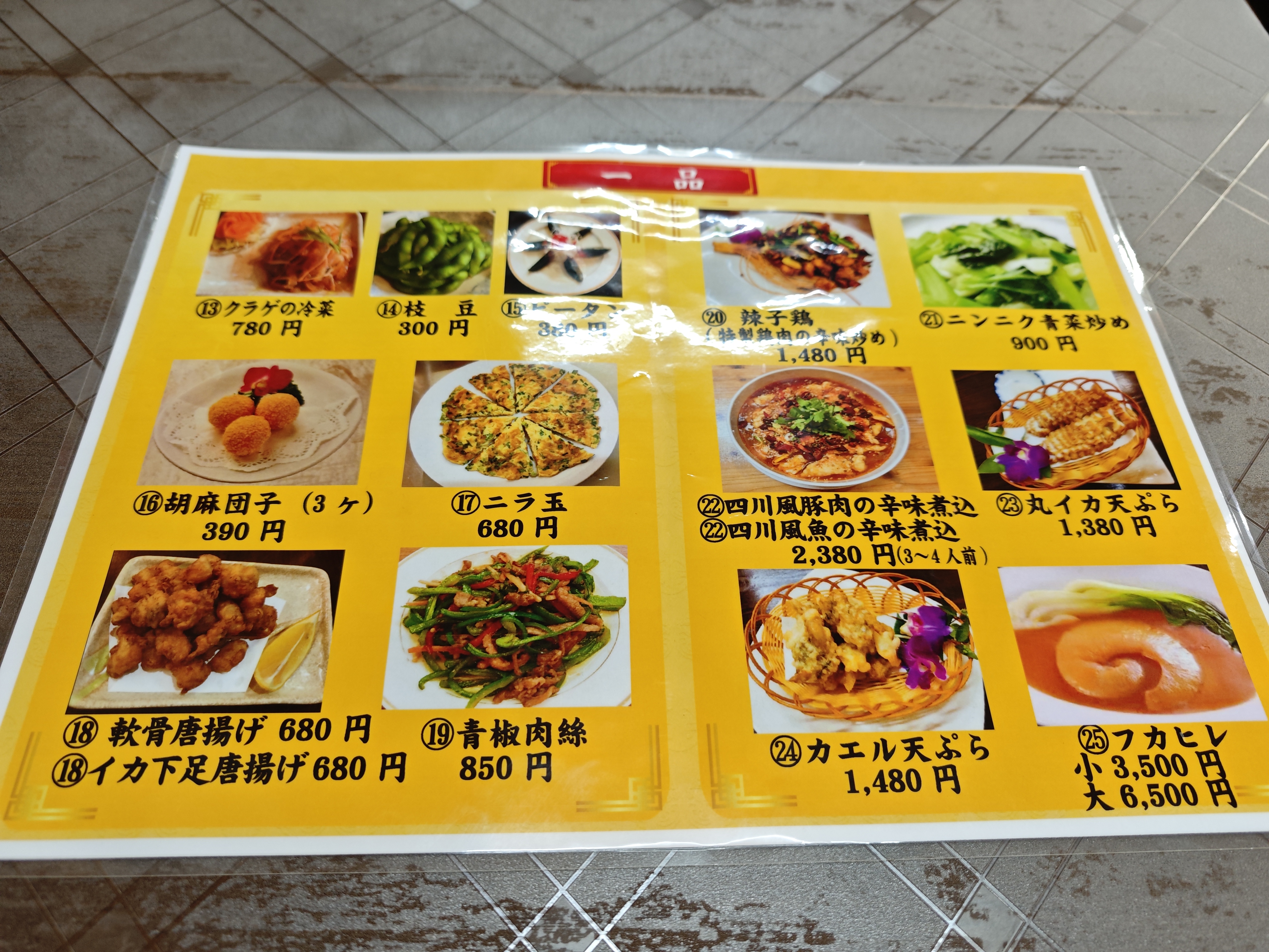 カエルの天ぷらやフカヒレまで、あまり町中華ではお目にかかれないメニューですね。