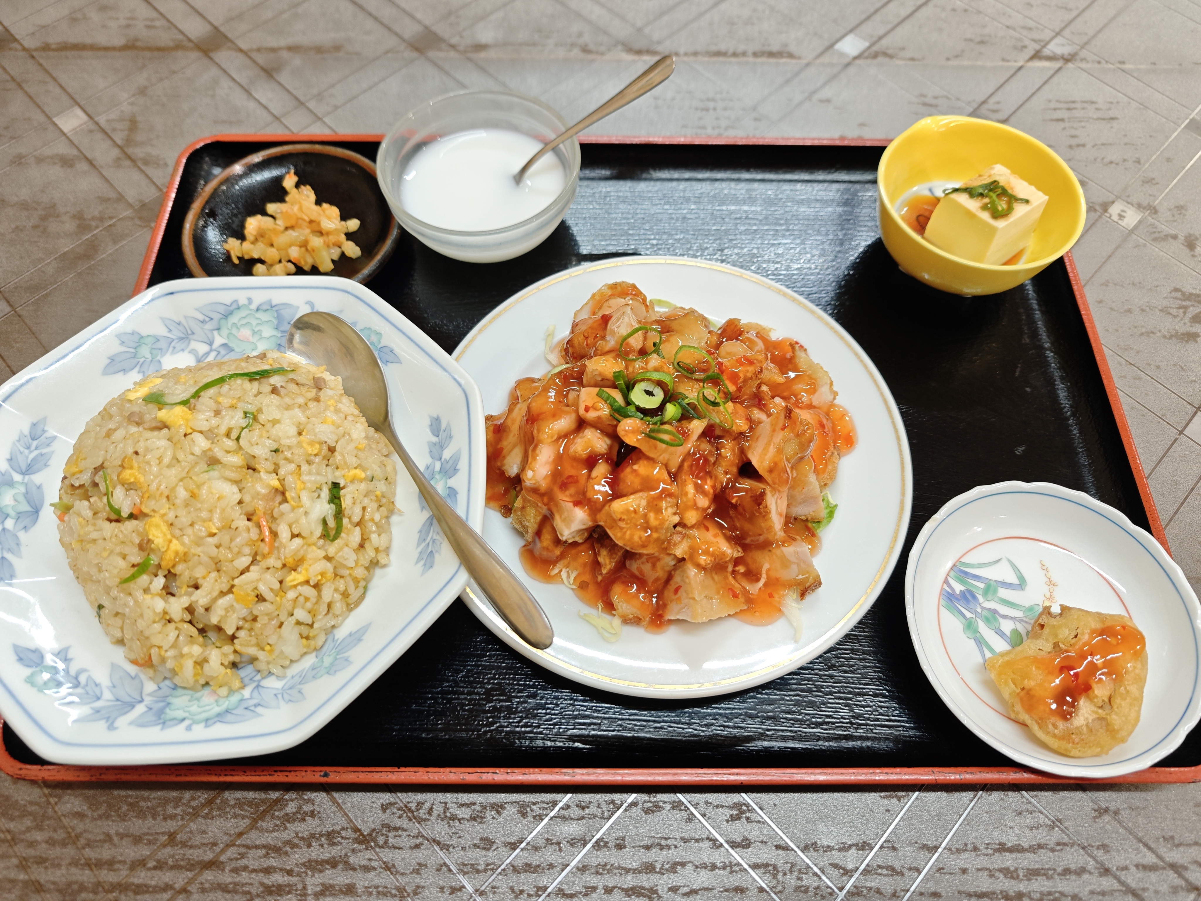 今回はランチタイムに油淋鶏定食(チャーハン入れ替え)を注文しました。