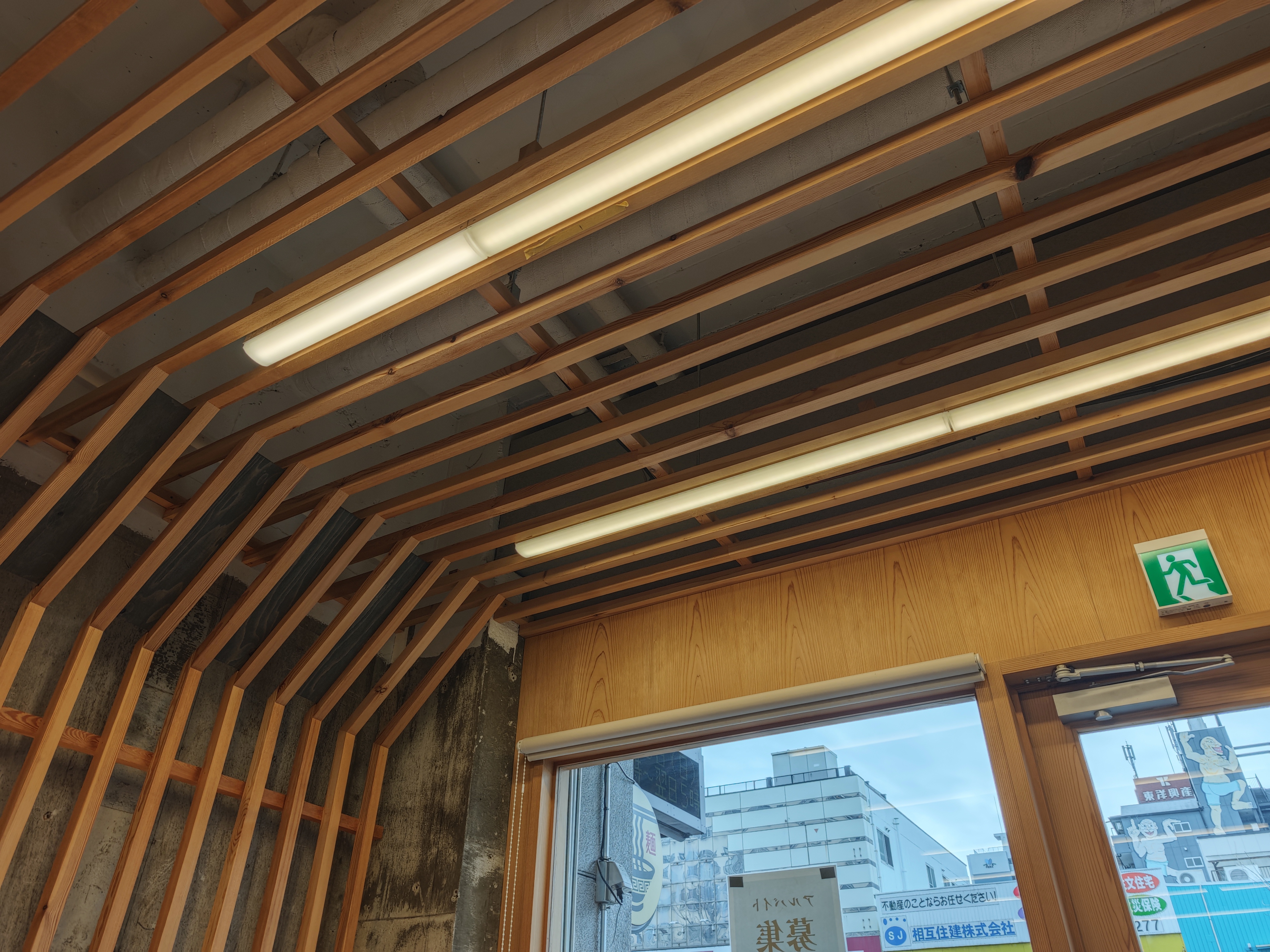 木目を基調にリノベーションされた外観です。