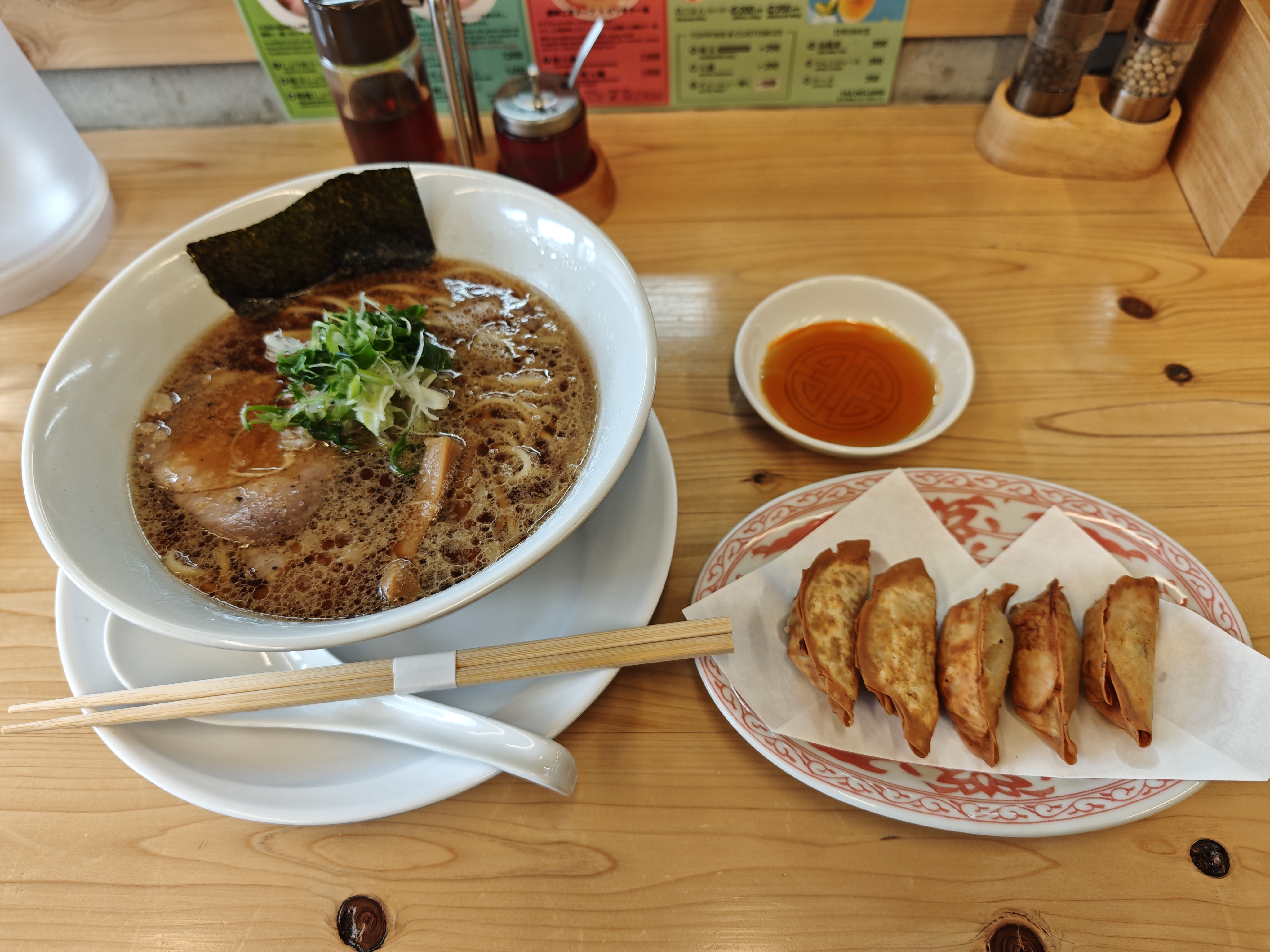 醤油ラーメンと揚げ餃子を注文しました。