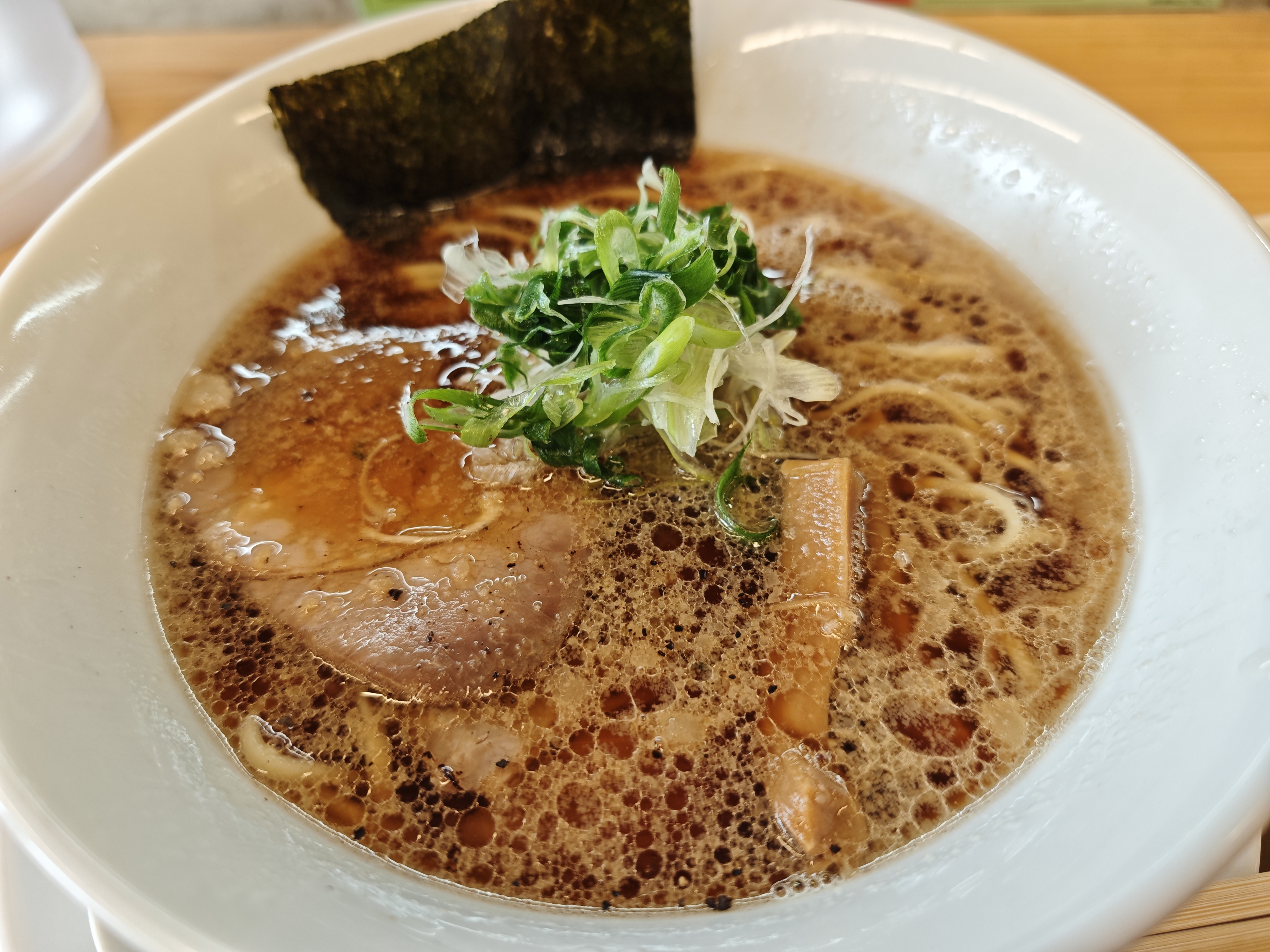 背脂に小豆島の醤油と煮干しの出汁がマイルドに調和した、旨みが感じられるとても美味しいスープの醤油ラーメン。