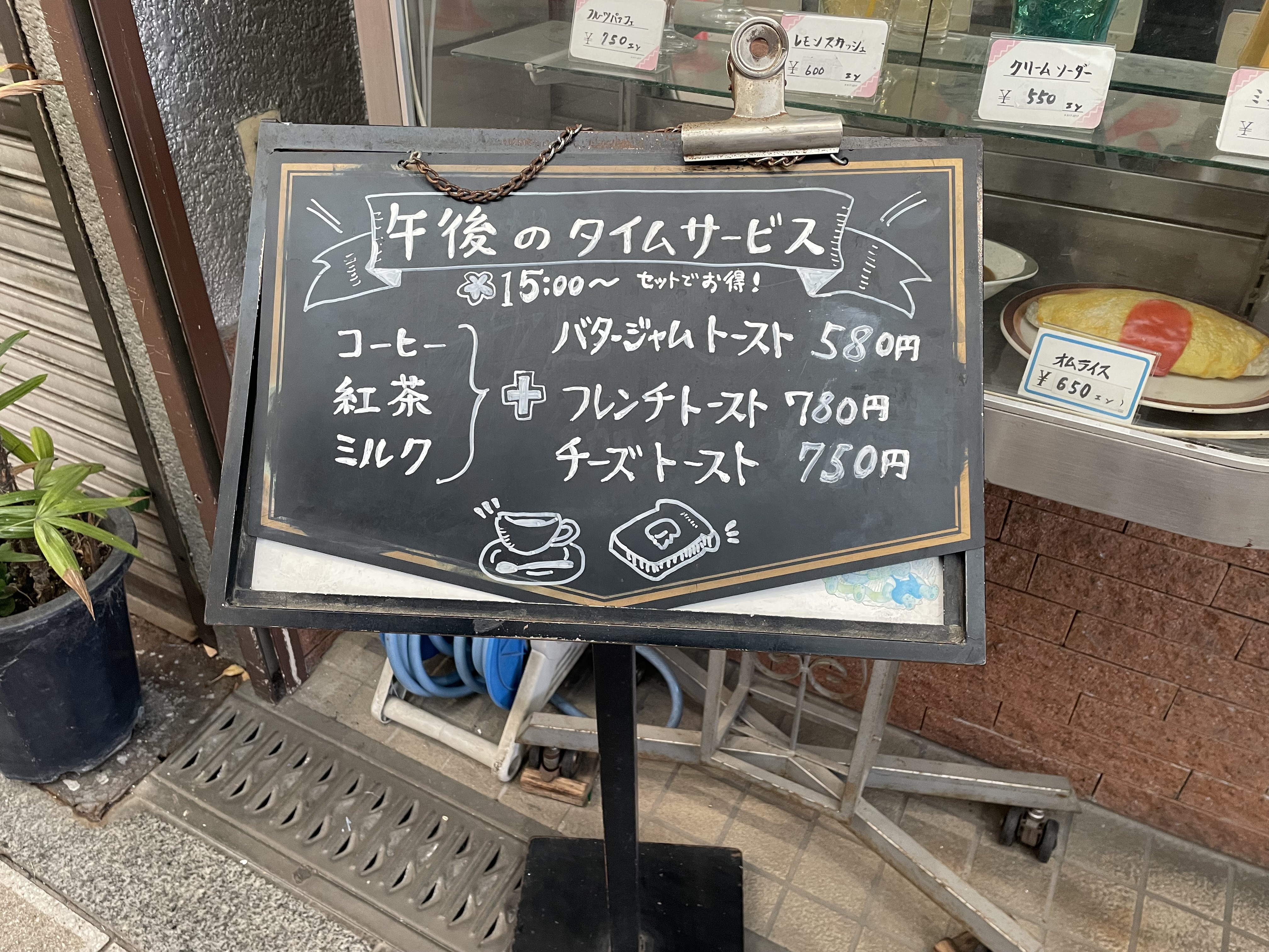 店頭の看板には「午後のタイムサービス」が記載されていました。時間帯によって変えられているようです。