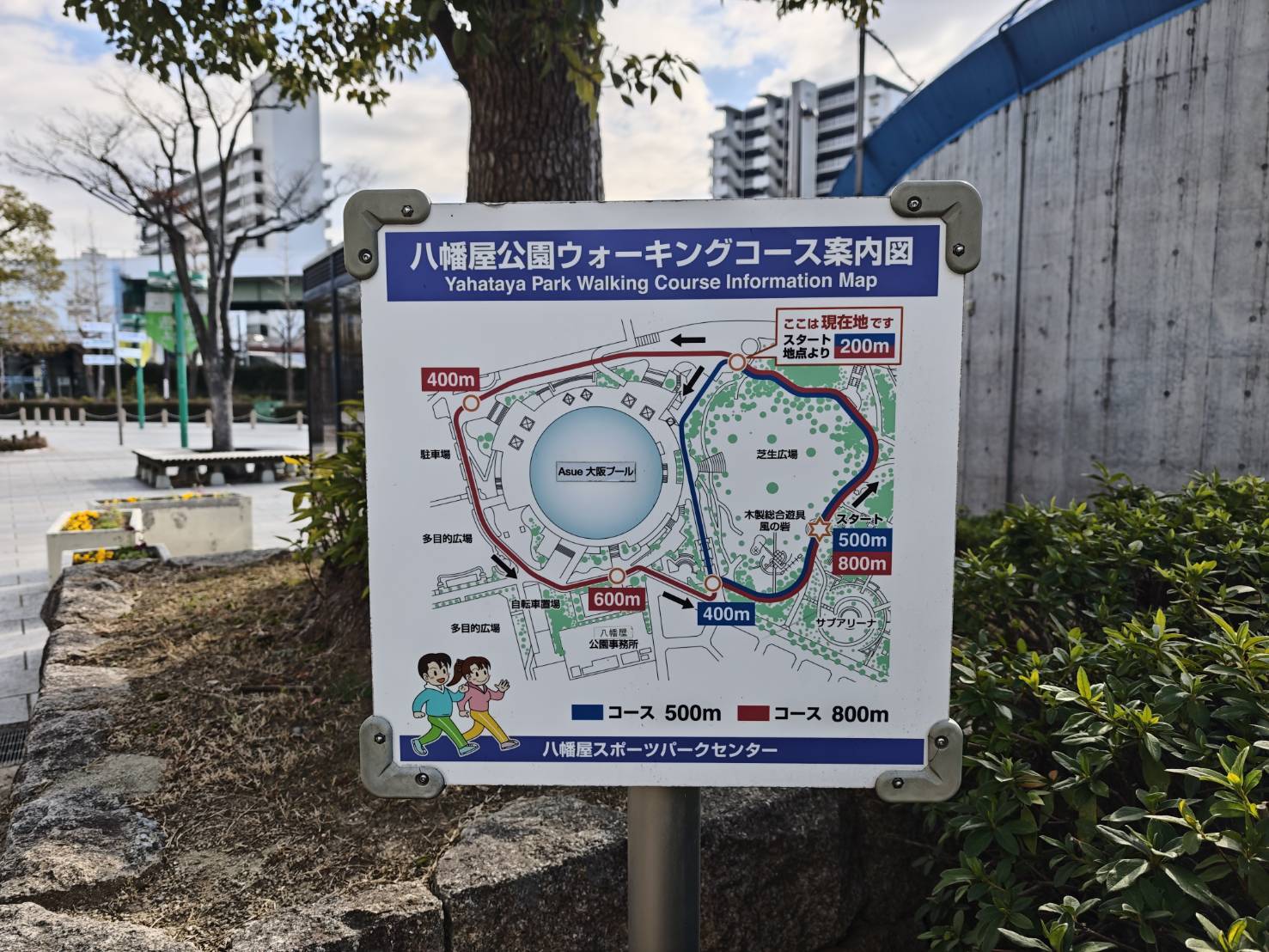 駅から降りてすぐの八幡屋公園は内周(500m)と、外周(800m)で距離が違うコースに分かれていて、1週ごとの距離が決まっているので、距離を決めて走るのに最適なコースです。
