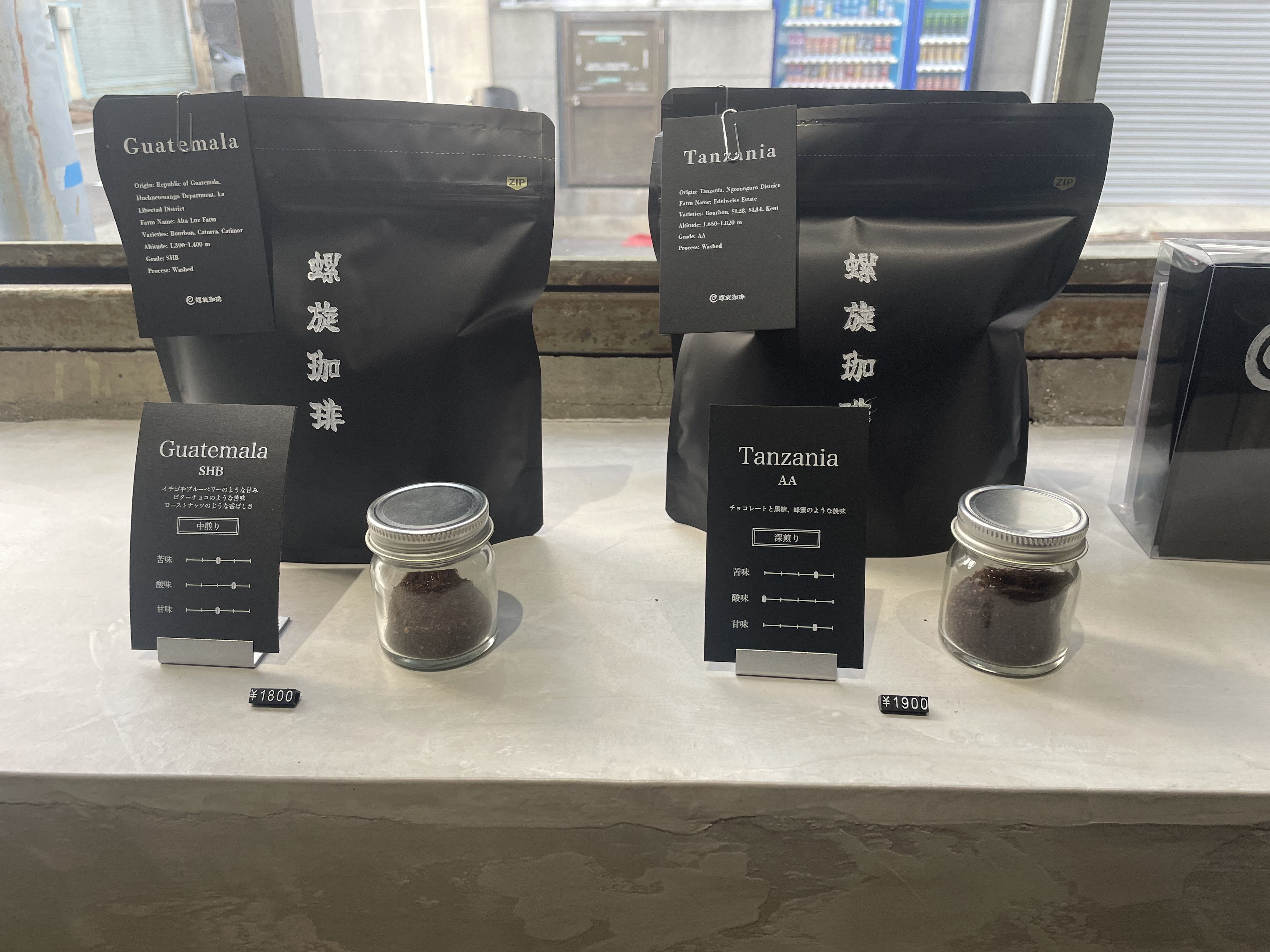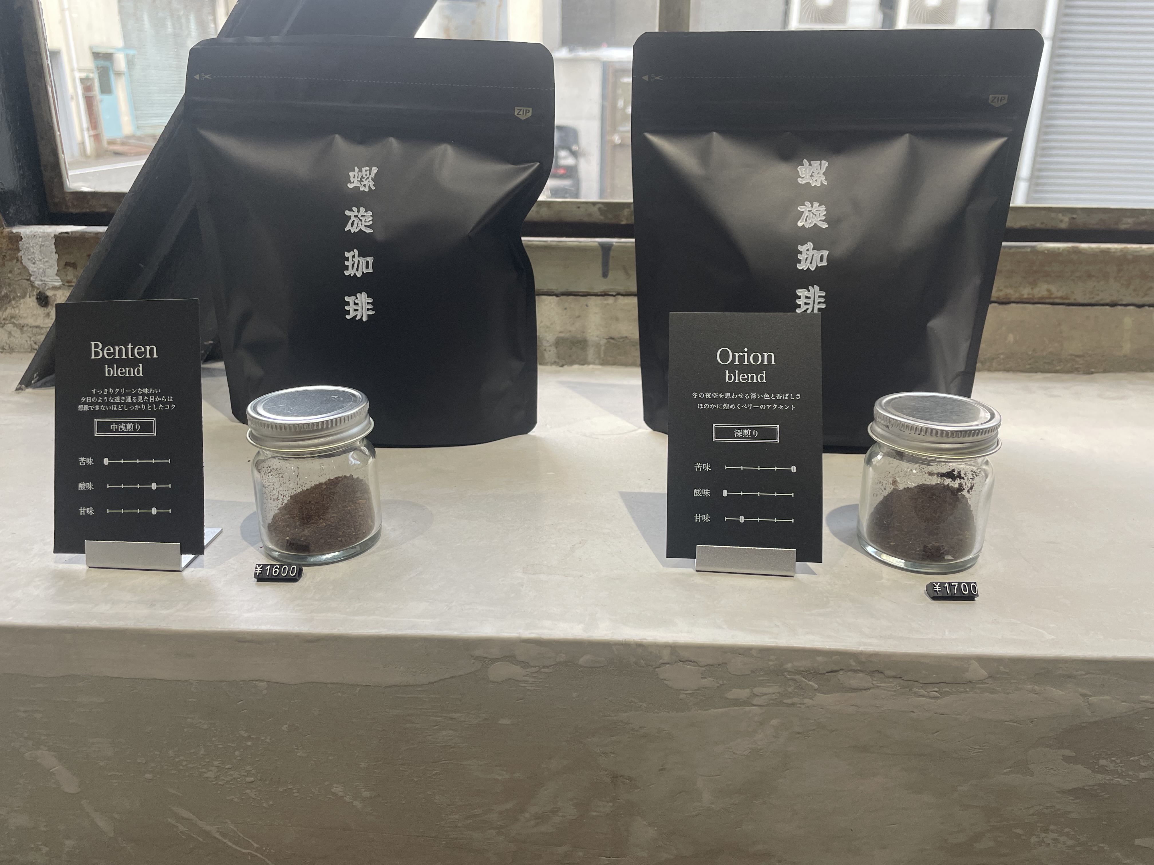 窓際にはコーヒーの販売も行われていました。気に入ったコーヒーがあれば購入することも可能です。