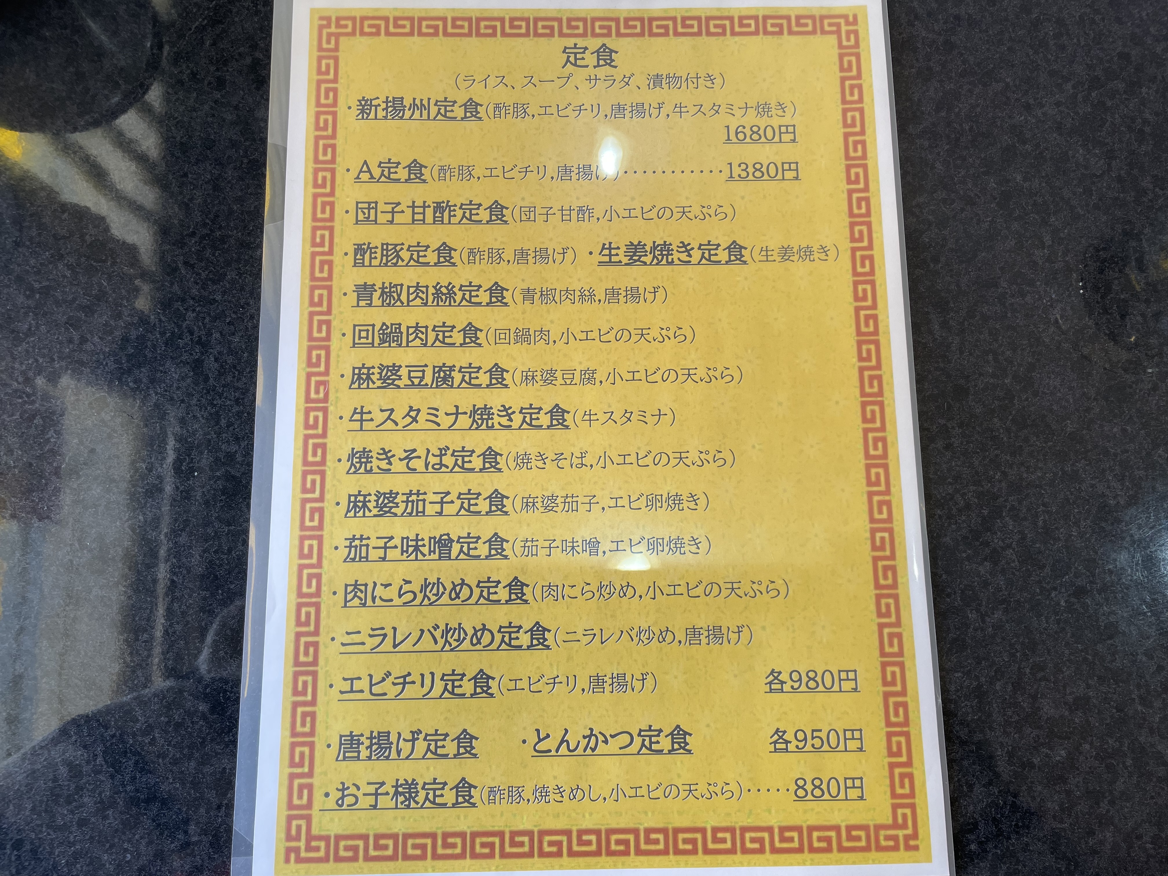 定食メニューは豊富。どのメニューにもメイン料理にプラス揚げ物が付いているので、ボリュームありそうな感じがします。
