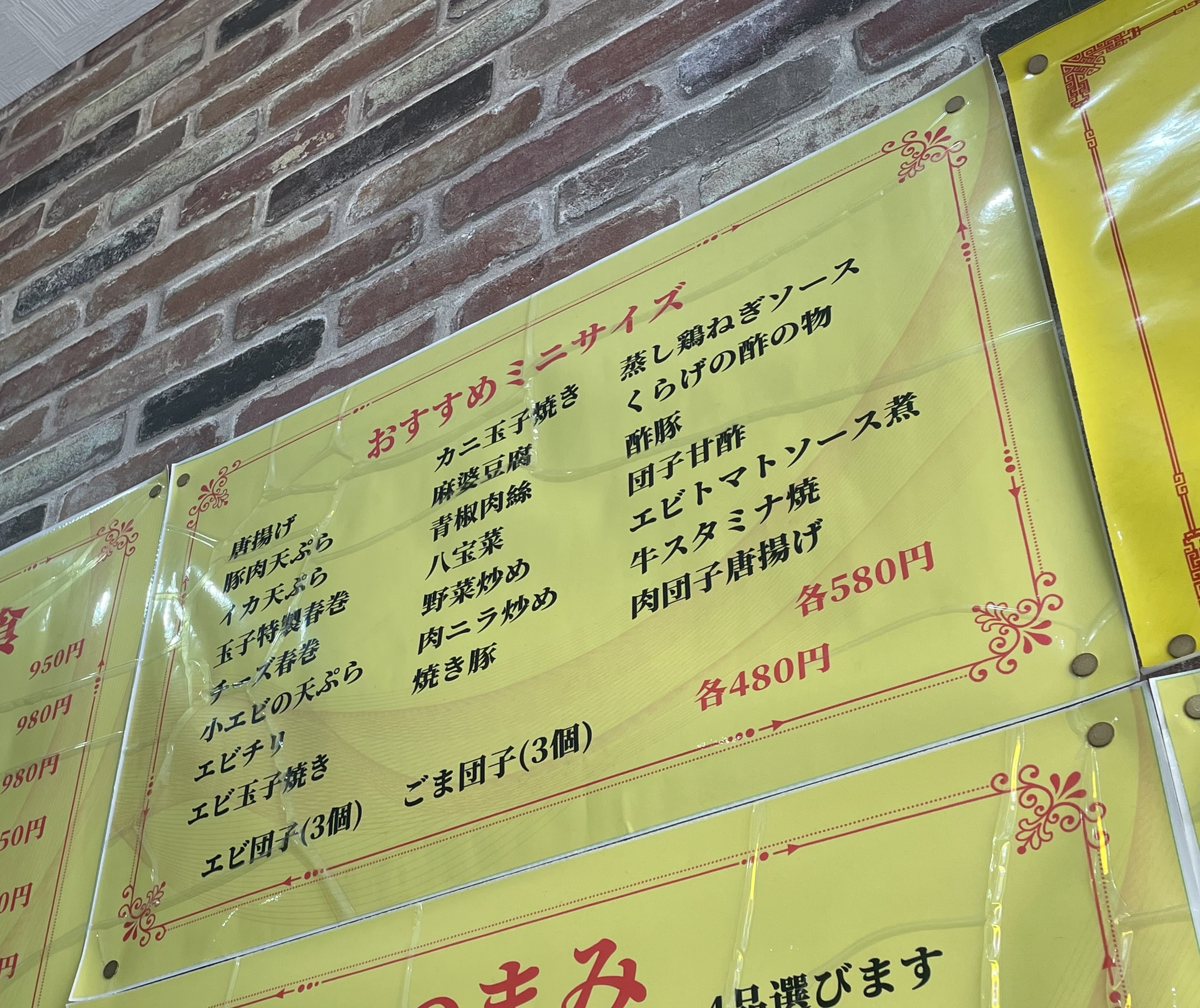 他のメニューを少し食べたいけど一人前ほどいらない…という方には「ミニサイズメニュー」もおすすめです。