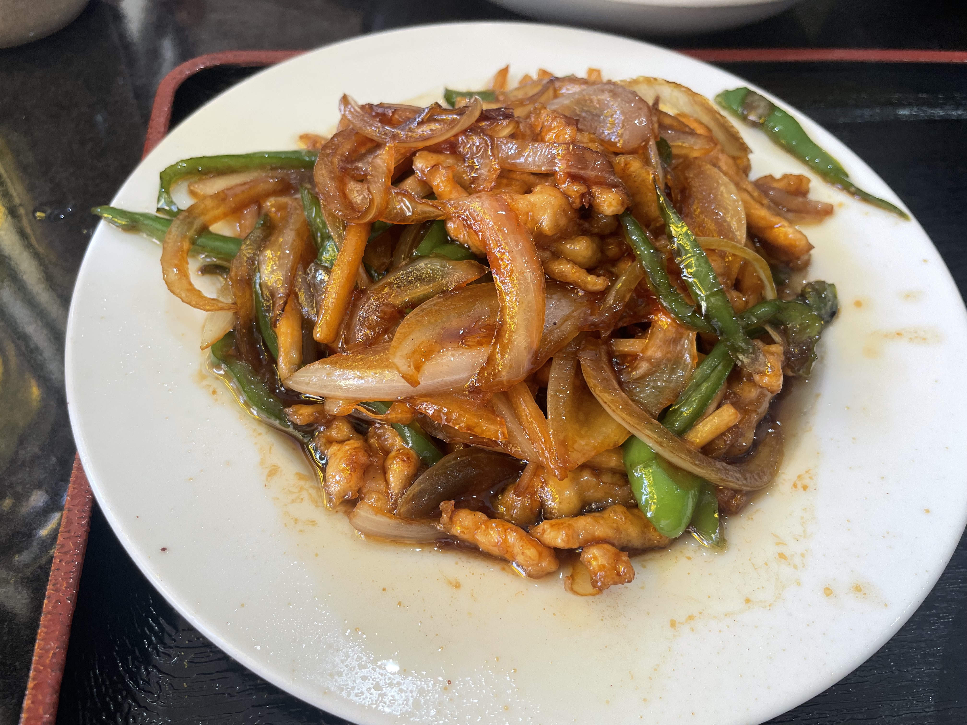 青椒肉絲は少し濃い目の味付けです。ご飯がとにかく進みます。