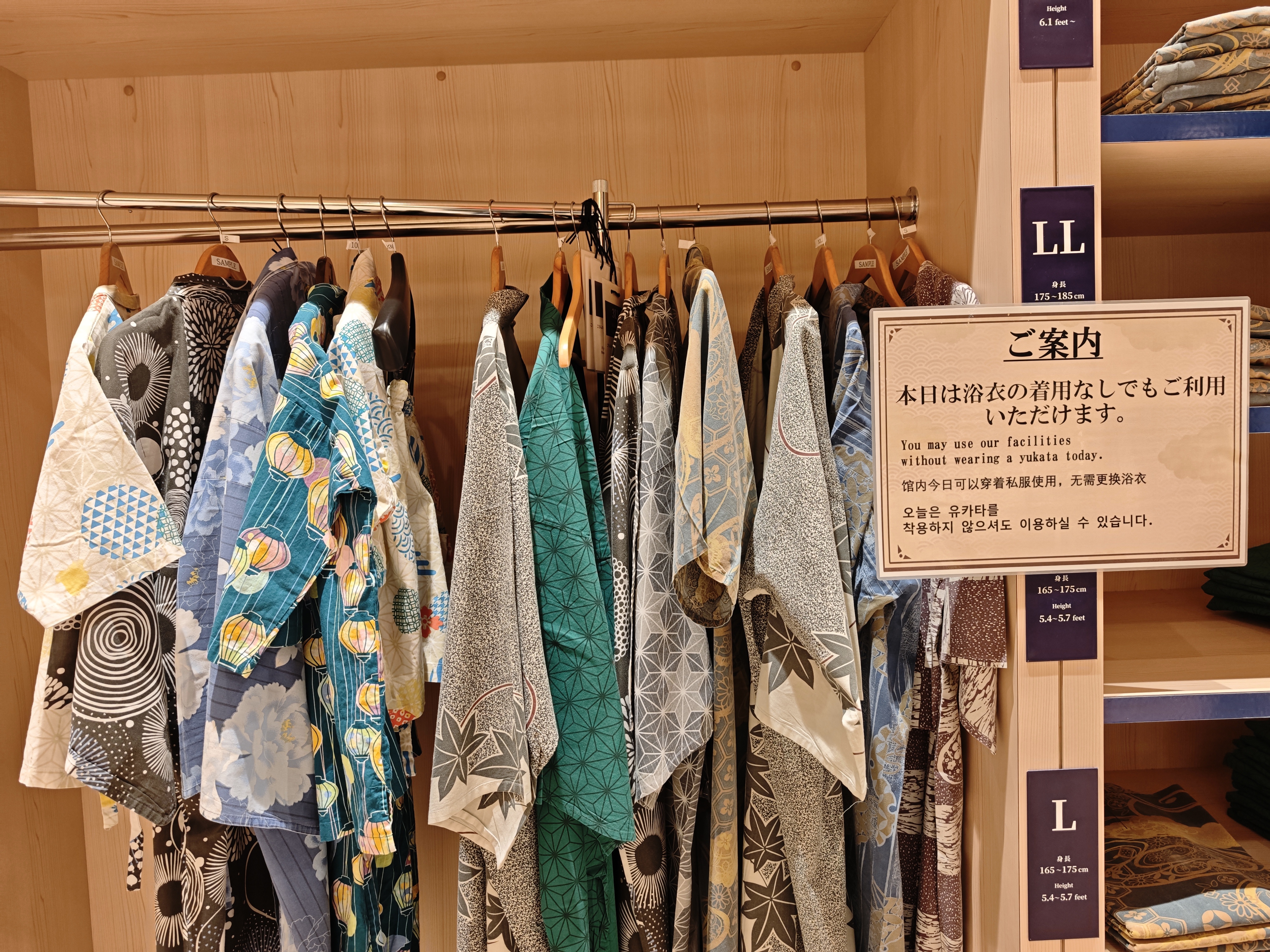 入館後は館内着を選びます。館内着は浴衣でいくつかデザインがあるので好きなものを選びましょう。