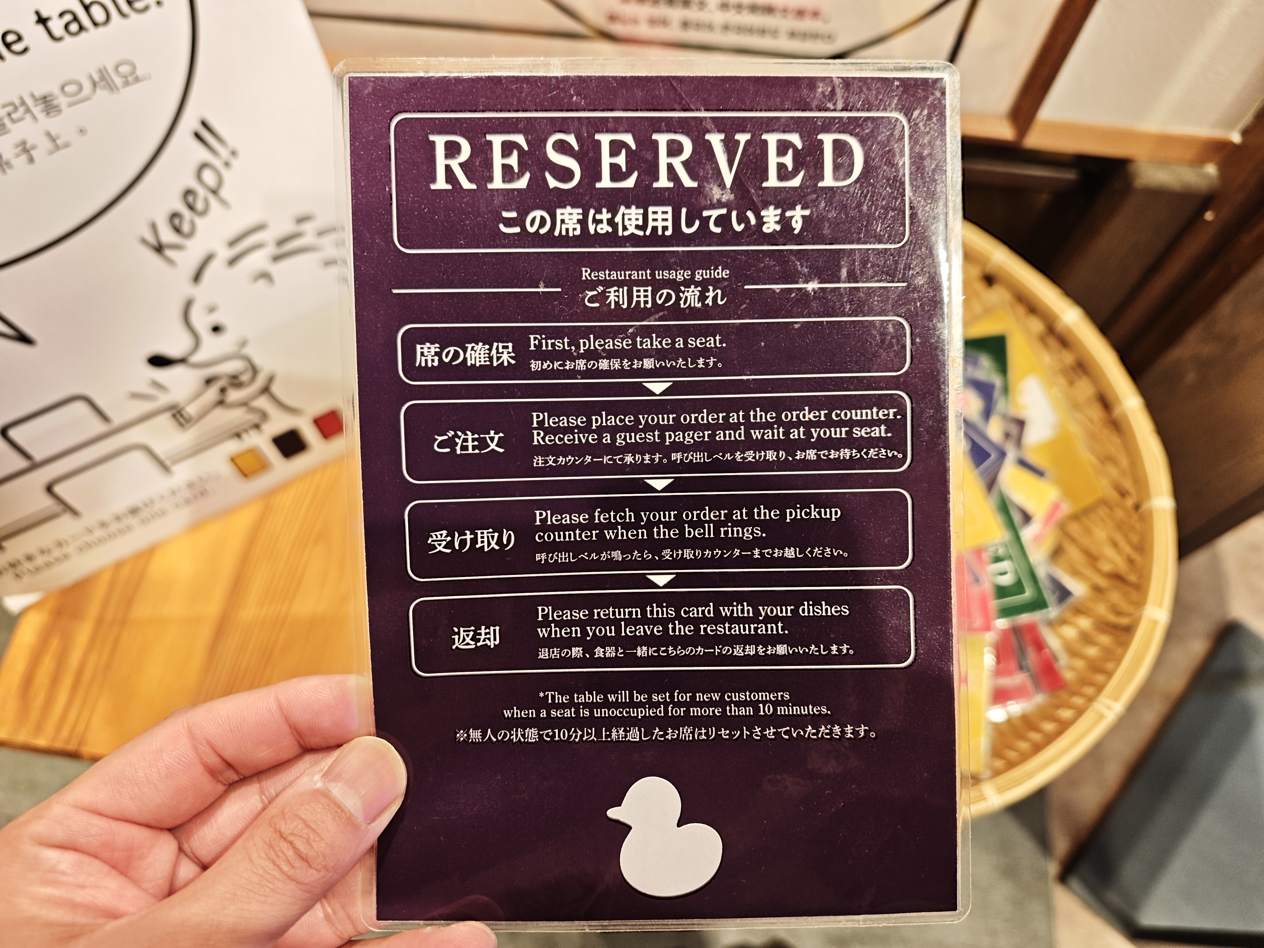 まずは注文前に席を確保する必要があります。