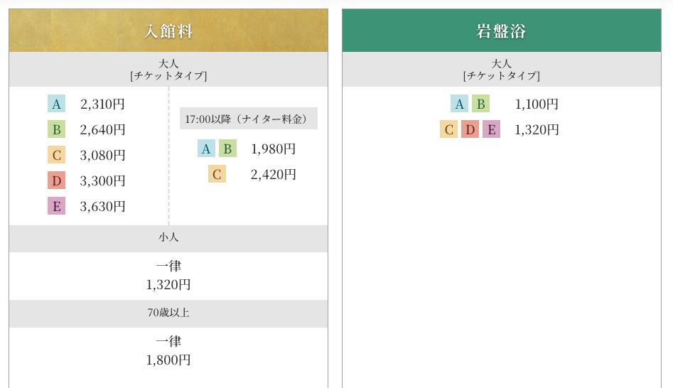 料金は旅行者向けで、他のスーパー銭湯と比べれば若干高めですが、お伝えしたとおり各種割引が使えるのでお得に入館する事も可能です。