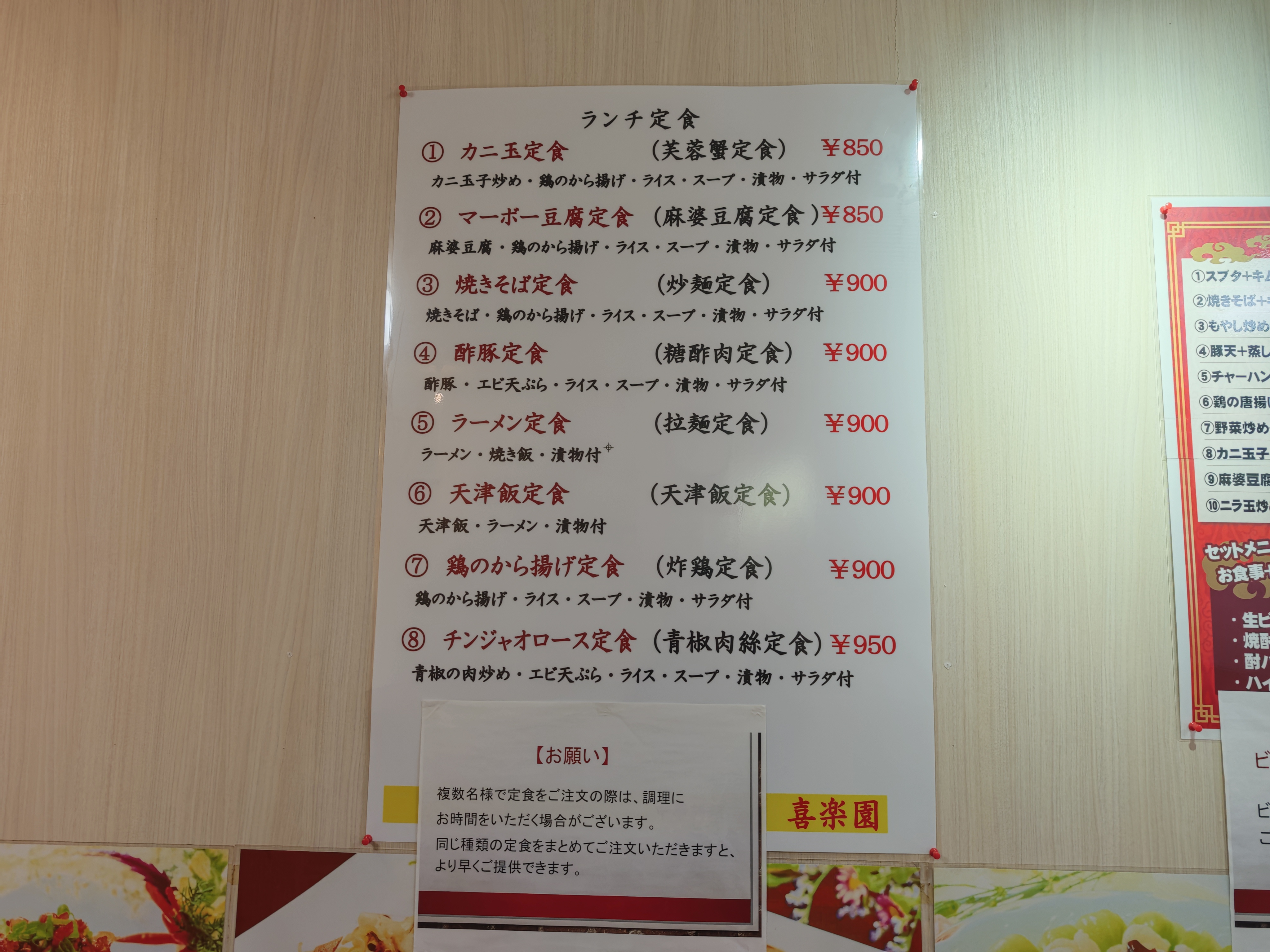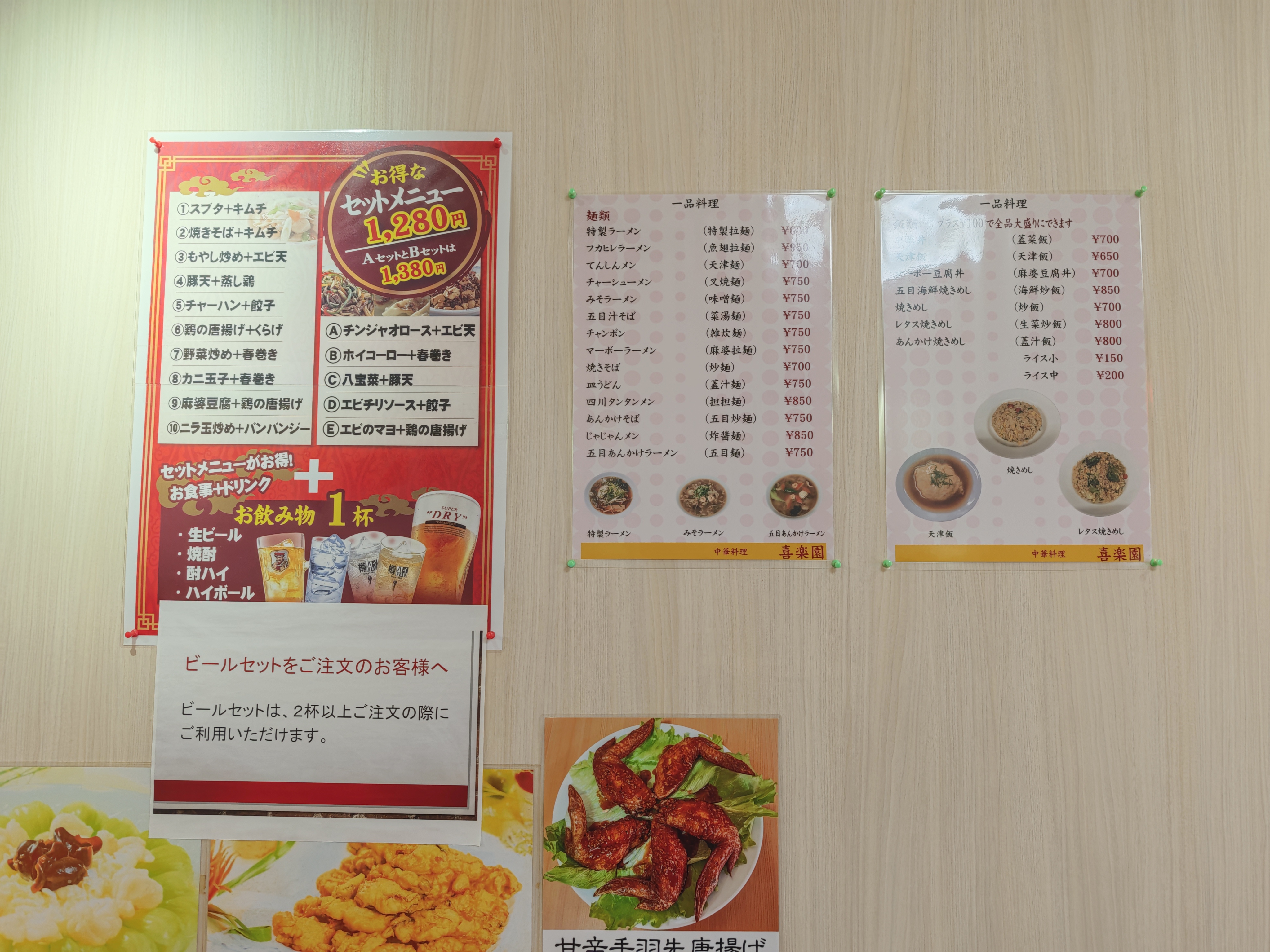「中華料理喜楽園」メニュー