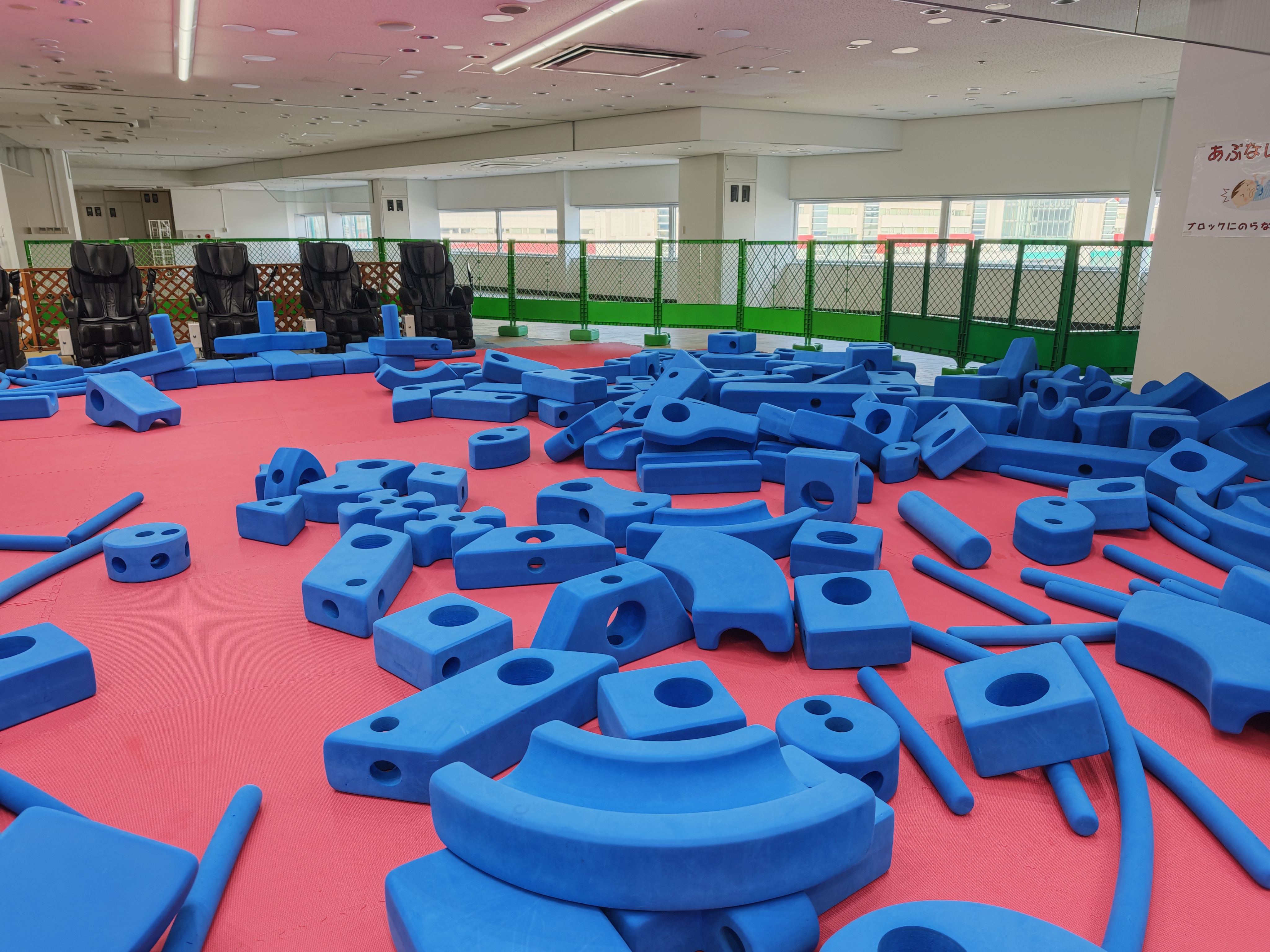 ベイエリア内には合計3箇所、室内で遊べる施設がありますが、「ATCあそびマーレ」が一番広々としていますし、近くに飲食店も多く1日中時間を潰せますね。