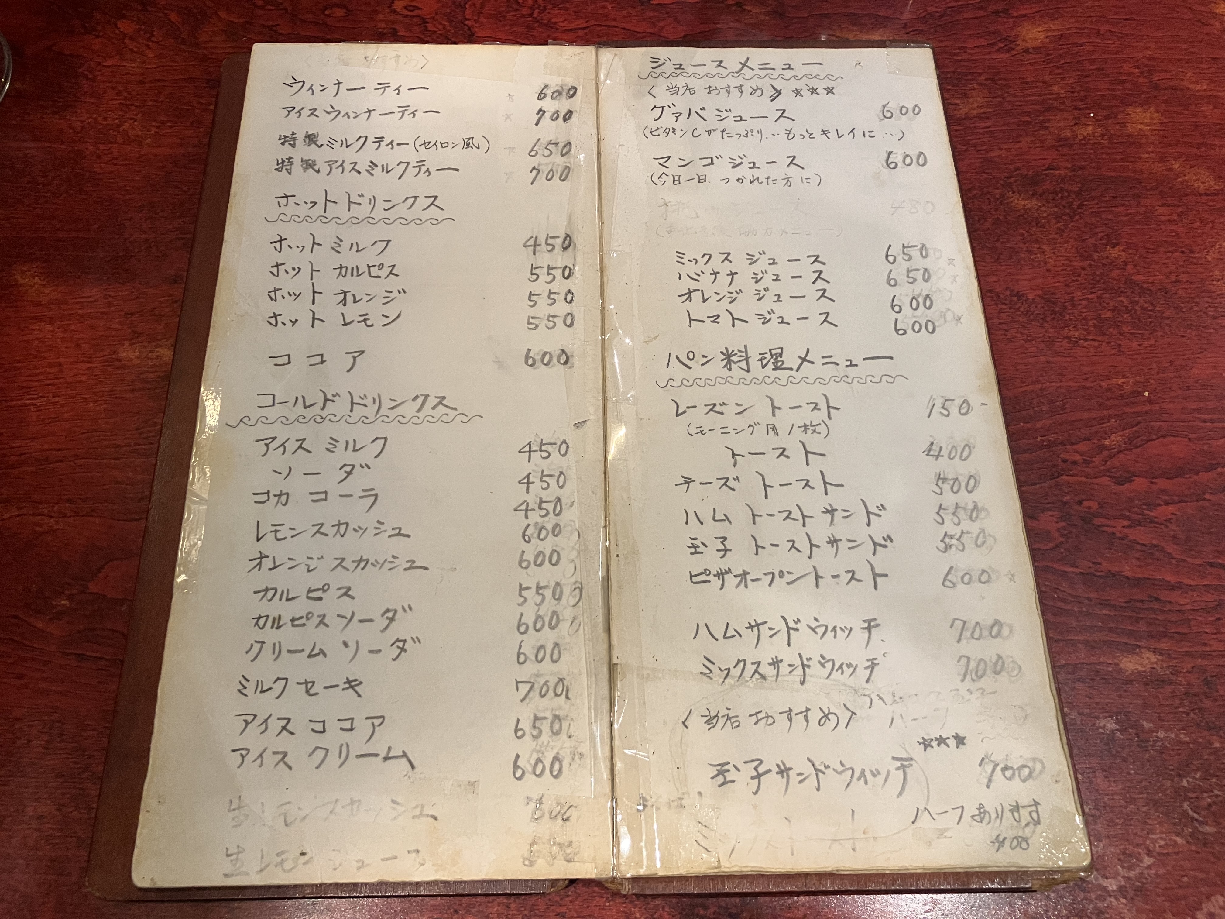 コーヒーはもちろん、紅茶や炭酸ジュース、フルーツジュースのメニューも豊富。手書きの一言に心動かされ、迷ってしまいそうです。