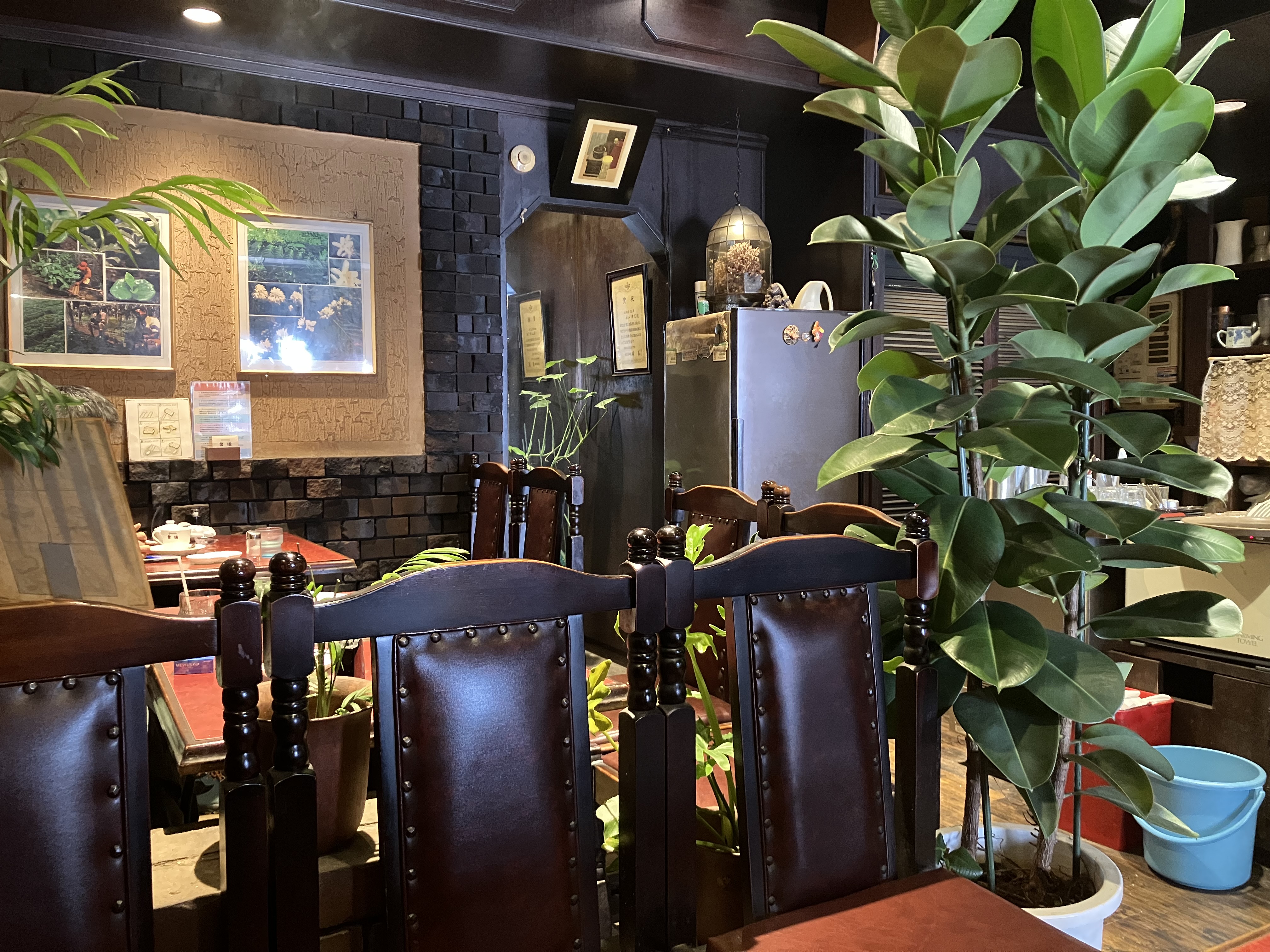 店内も煉瓦造りになっており、赤い皮張りの椅子に赤いテーブル。ゆったりと流れる音楽と、いたるところに散りばめられた観葉植物で心の底からリラックスできます。
