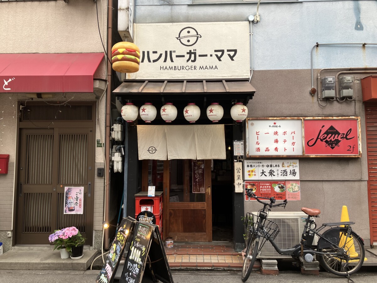 JR大阪環状線、地下鉄長堀鶴見緑地線「大正駅」から徒歩2分、バーガー酒場「ハンバーガー・ママ」のご紹介です。お昼からガッツリ食べたい人にも、アテとお酒を楽しみたい人にもおすすめですよ。