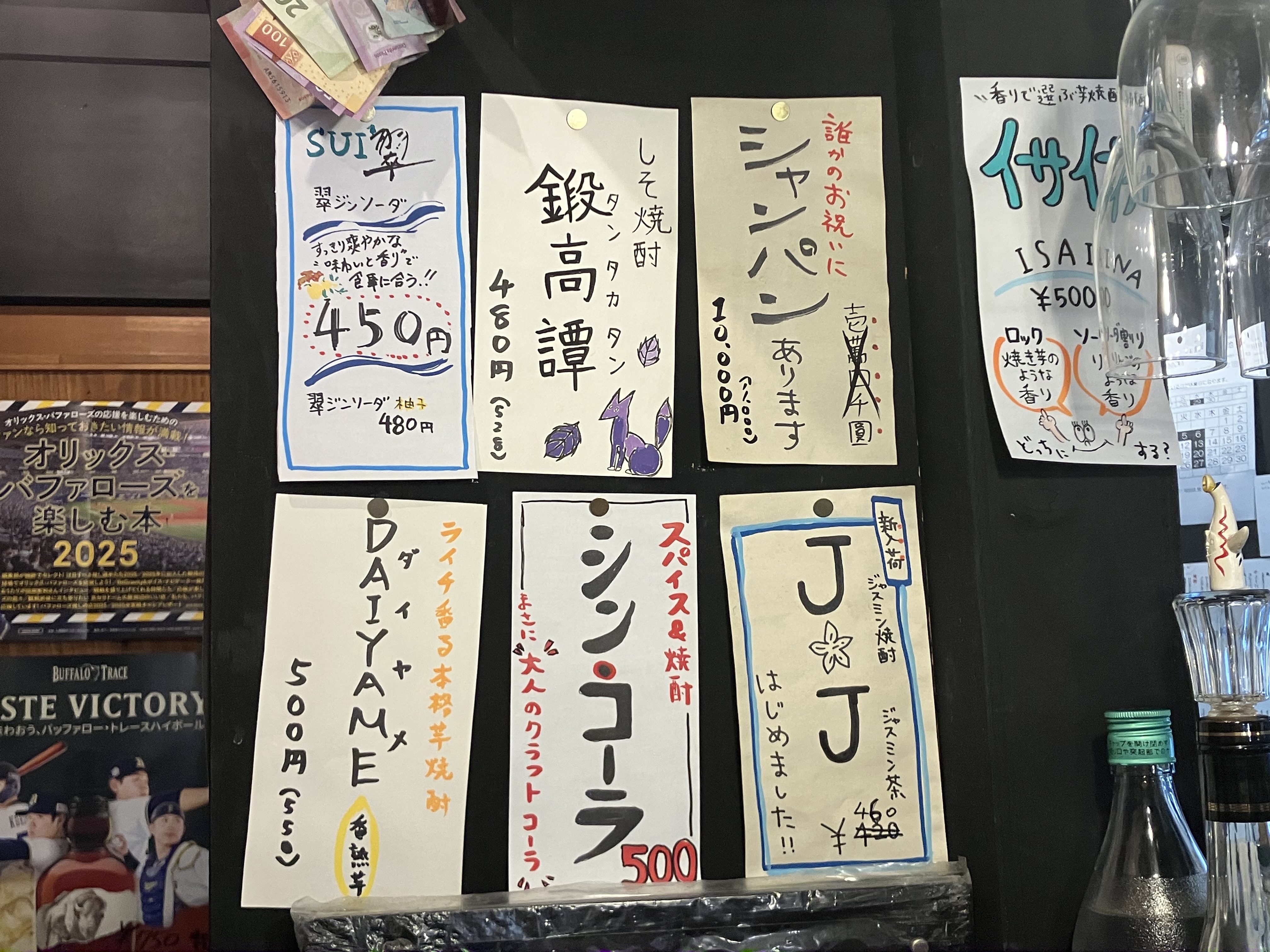 お酒のメニューも豊富。麦焼酎なんかは、キレがありスッキリと呑めるため、口の中のコッテリ感を洗い流してくれてハンバーガーとも相性が良さそうです。