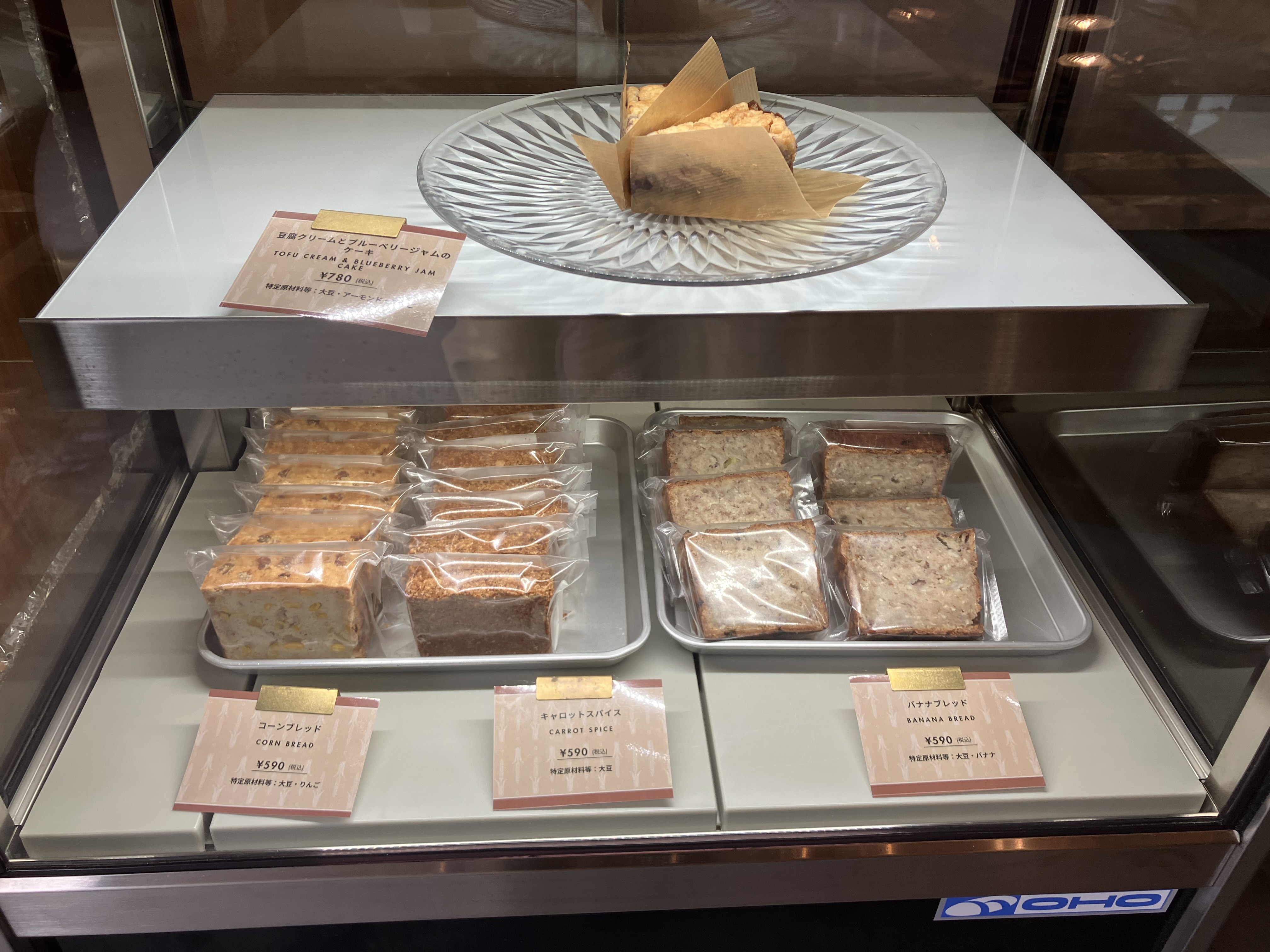 ブルーベリージャムのケーキに使われているクリームはお豆腐から作られているそうです。ブレッドは、ずっしりと重みがあり、見た目以上にボリュームがありそうでした。
