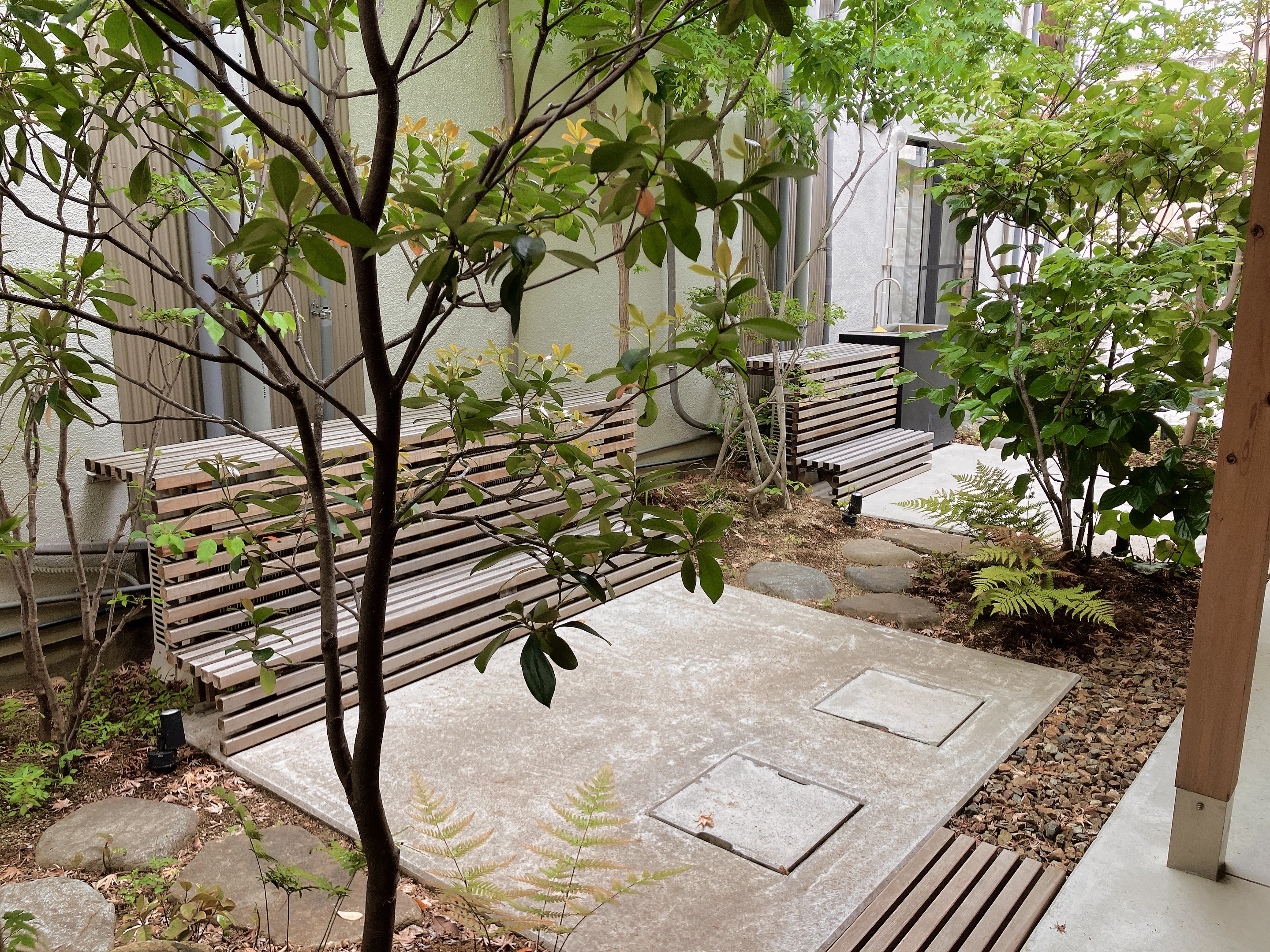 複合施設なので、他店舗のお客様と相席になる可能性もありますが、2階にもイートイン席があります。夏の夕暮れはライトアップされてとても綺麗なんだそう!涼しい夜風に当たりながら美味しいお菓子が食べられるなんて、とても素敵ですね。