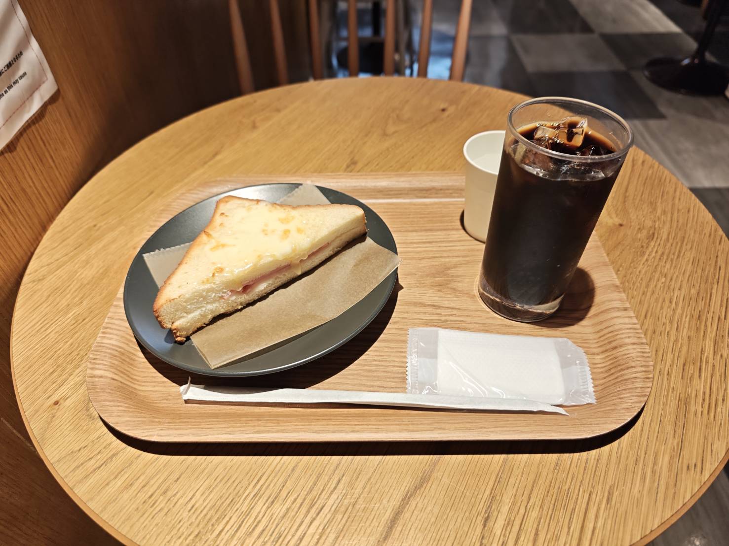 モーニングのクロックムッシュとアイスコーヒーのセットを注文しました。