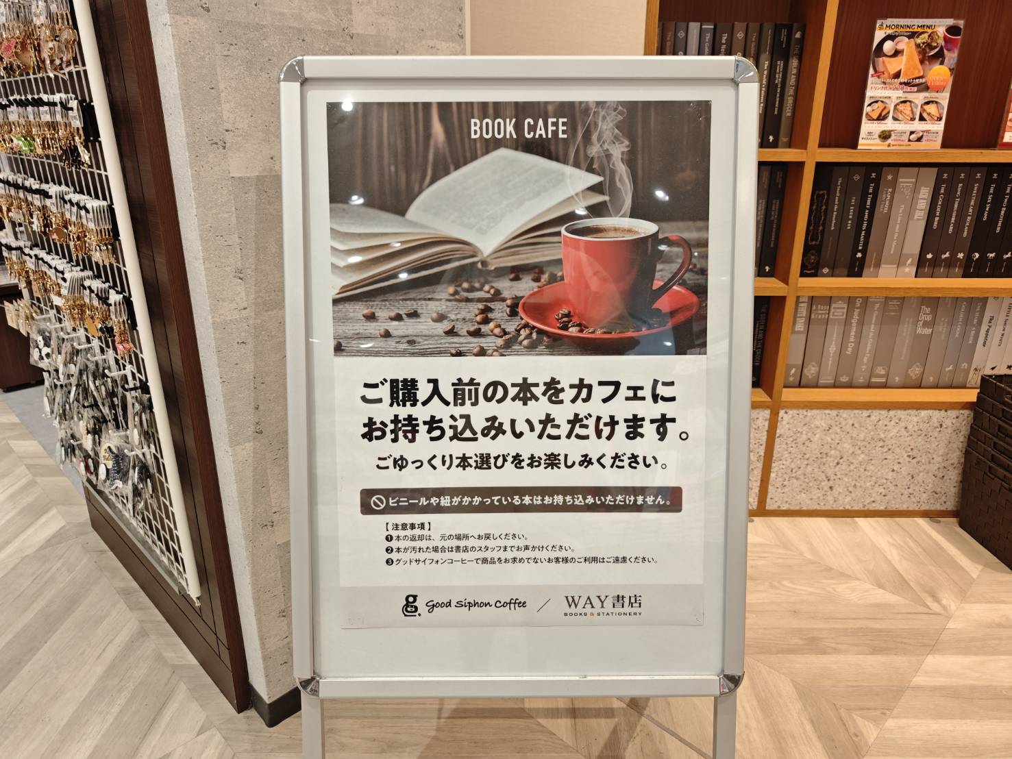このカフェの特徴は併設されたWAY書店の本を持ち込めることです。
