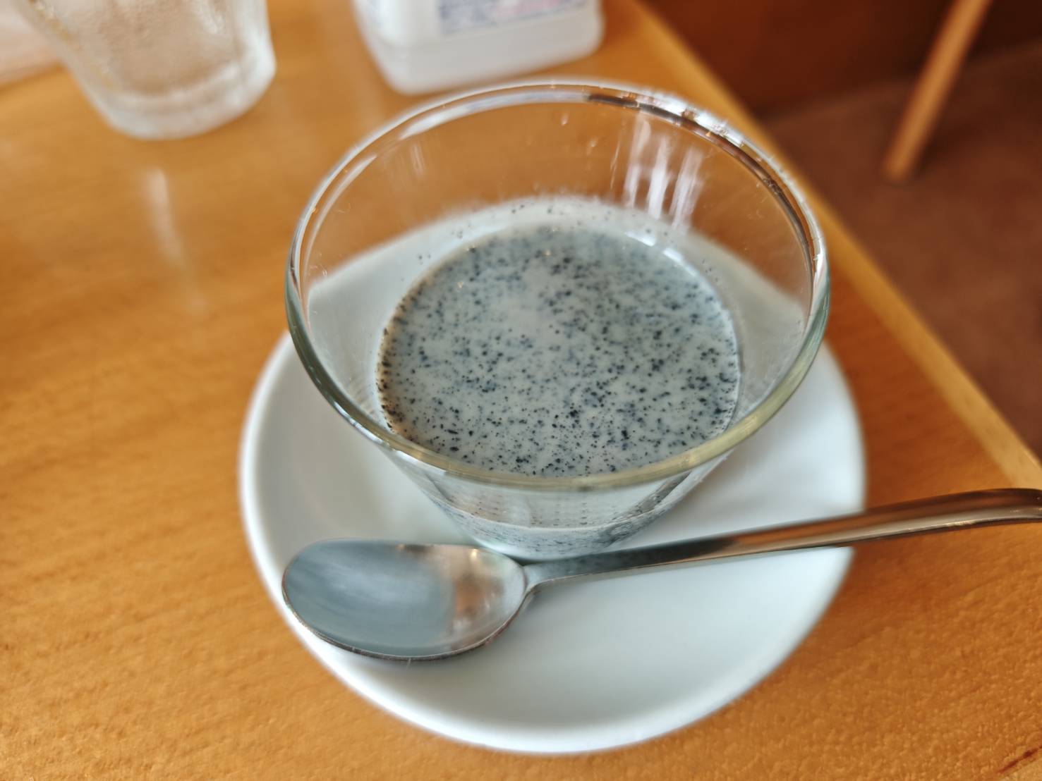 デザートは胡麻プリンでした。食べ終わるのを見計らって店員さんが持ってきてくれます。